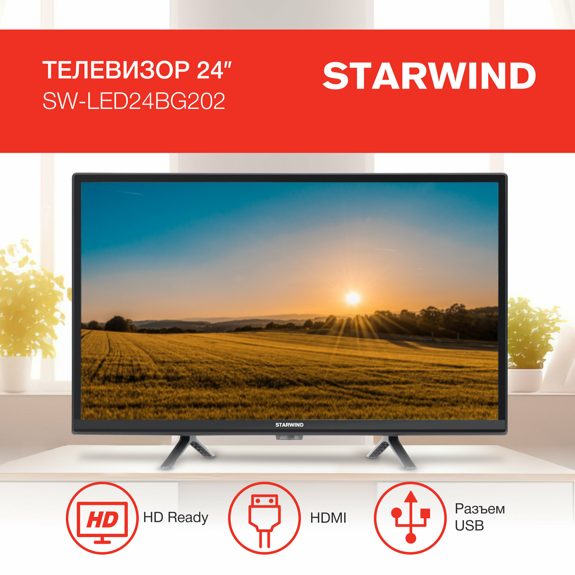 Телевизор LED Starwind 24" SW-LED24BG202 Slim Design черный HD 60Hz DVB-T DVB-T2 DVB-C DVB-S DVB-S2 USB интересное: