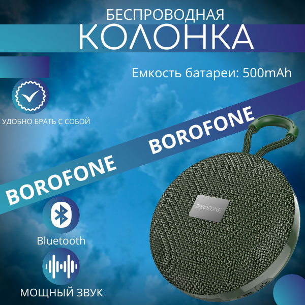 Колонка портативная BOROFONE BR27, 500mAh, темно-зеленый интересное: