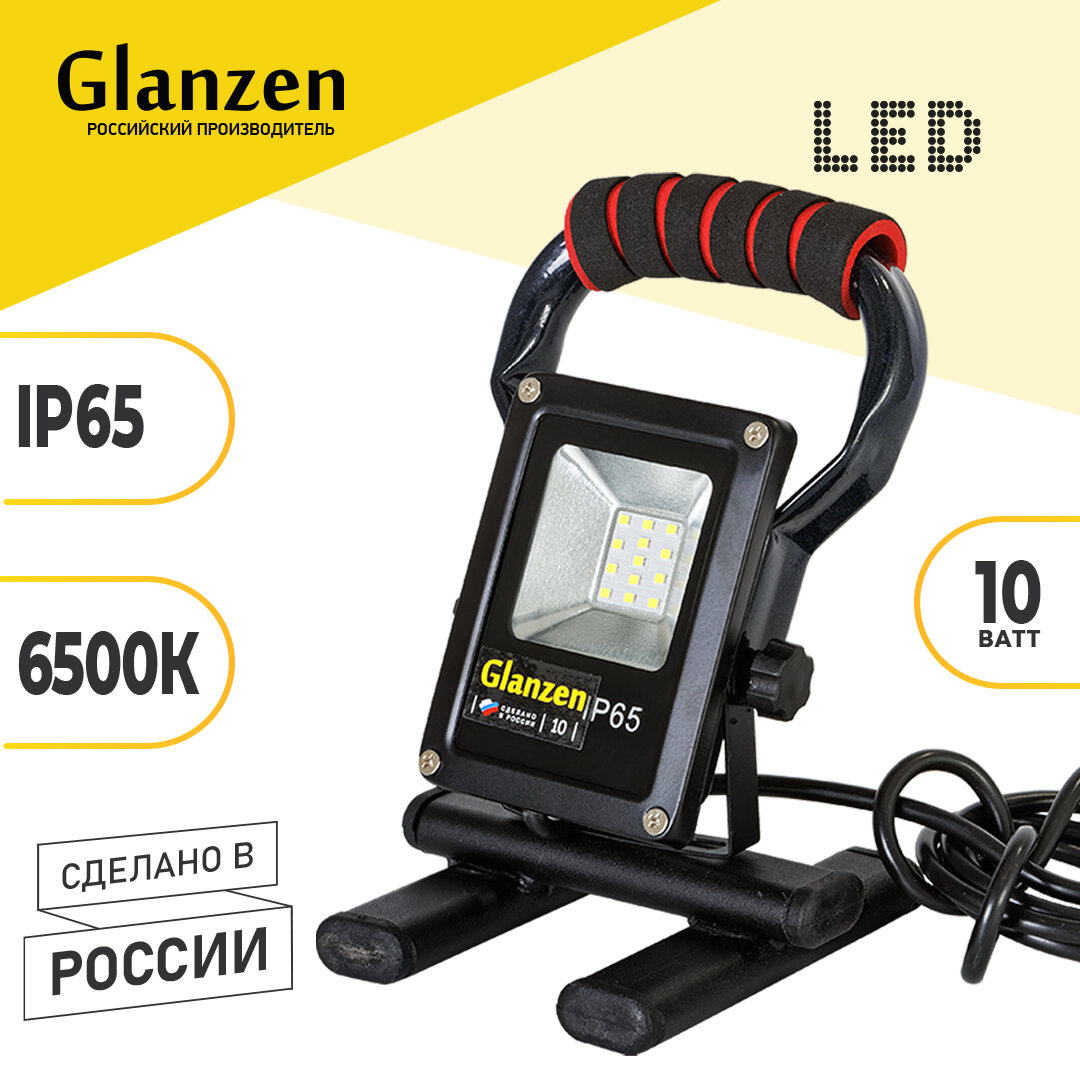Светодиодный прожектор переносной GLANZEN FAD-0018-10 (10 Вт, 6000К), 00-00003773