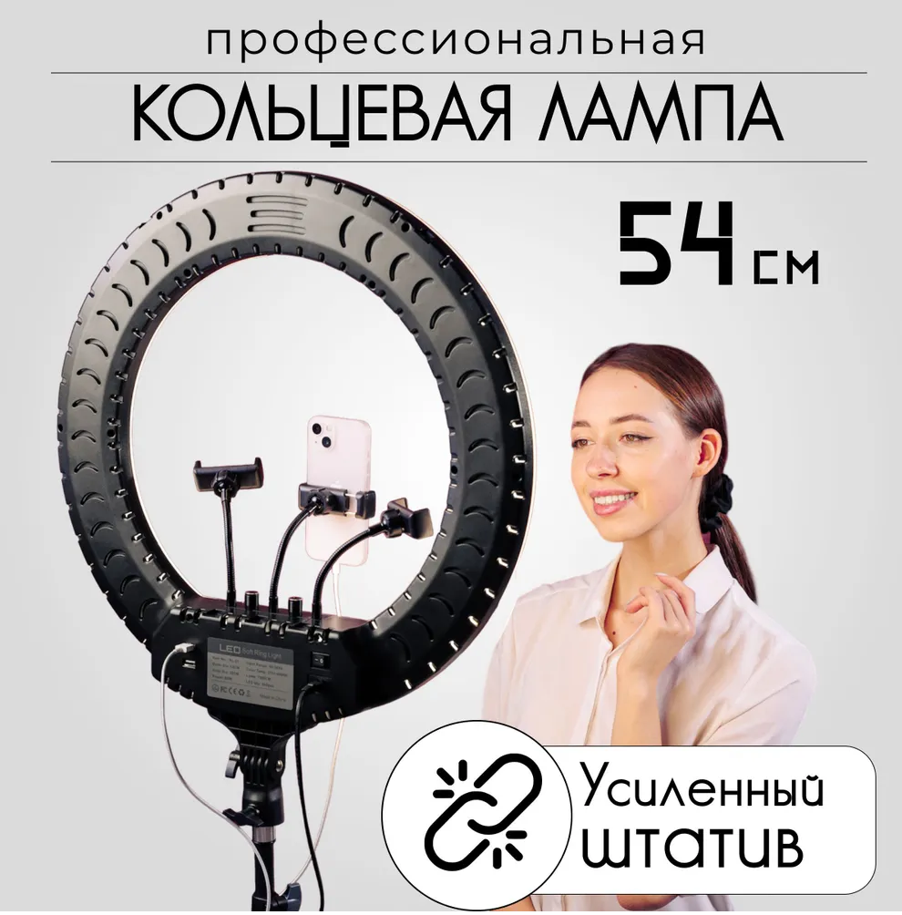 Кольцевая лампа RL 54 см на 60 Вт с усиленным штативом 2м интересное: