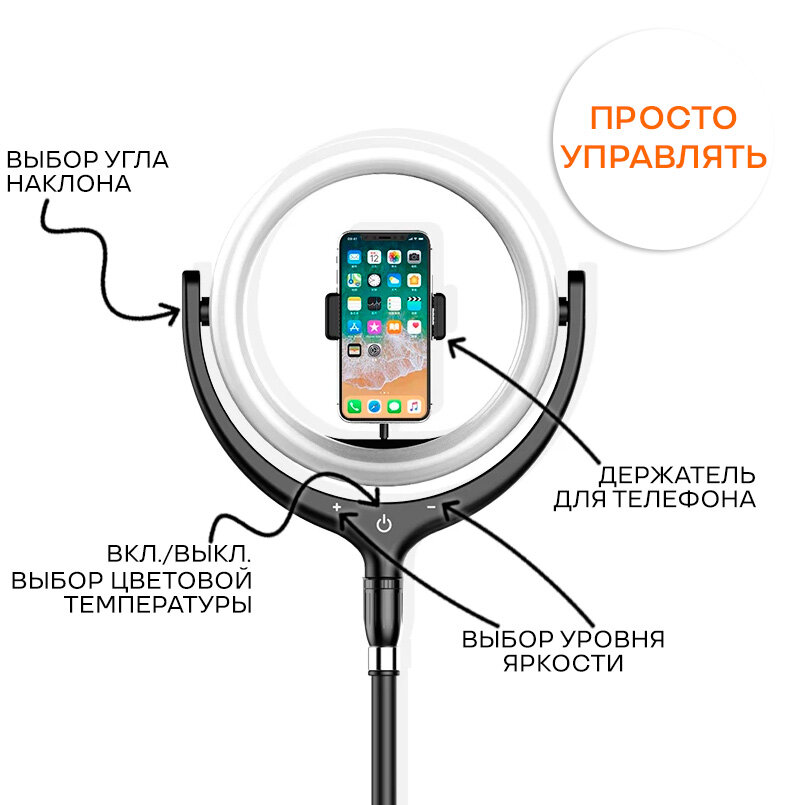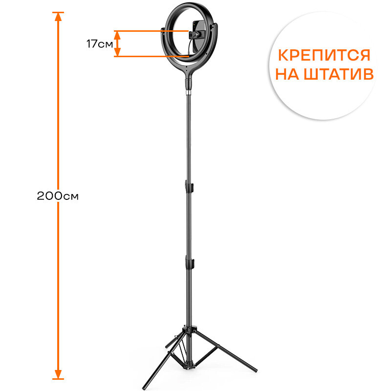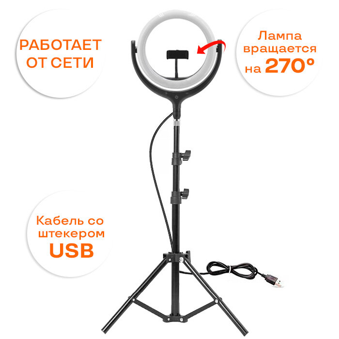 Светодиодная кольцевая лампа 26см для телефона со штативом Jmary черная интересное: