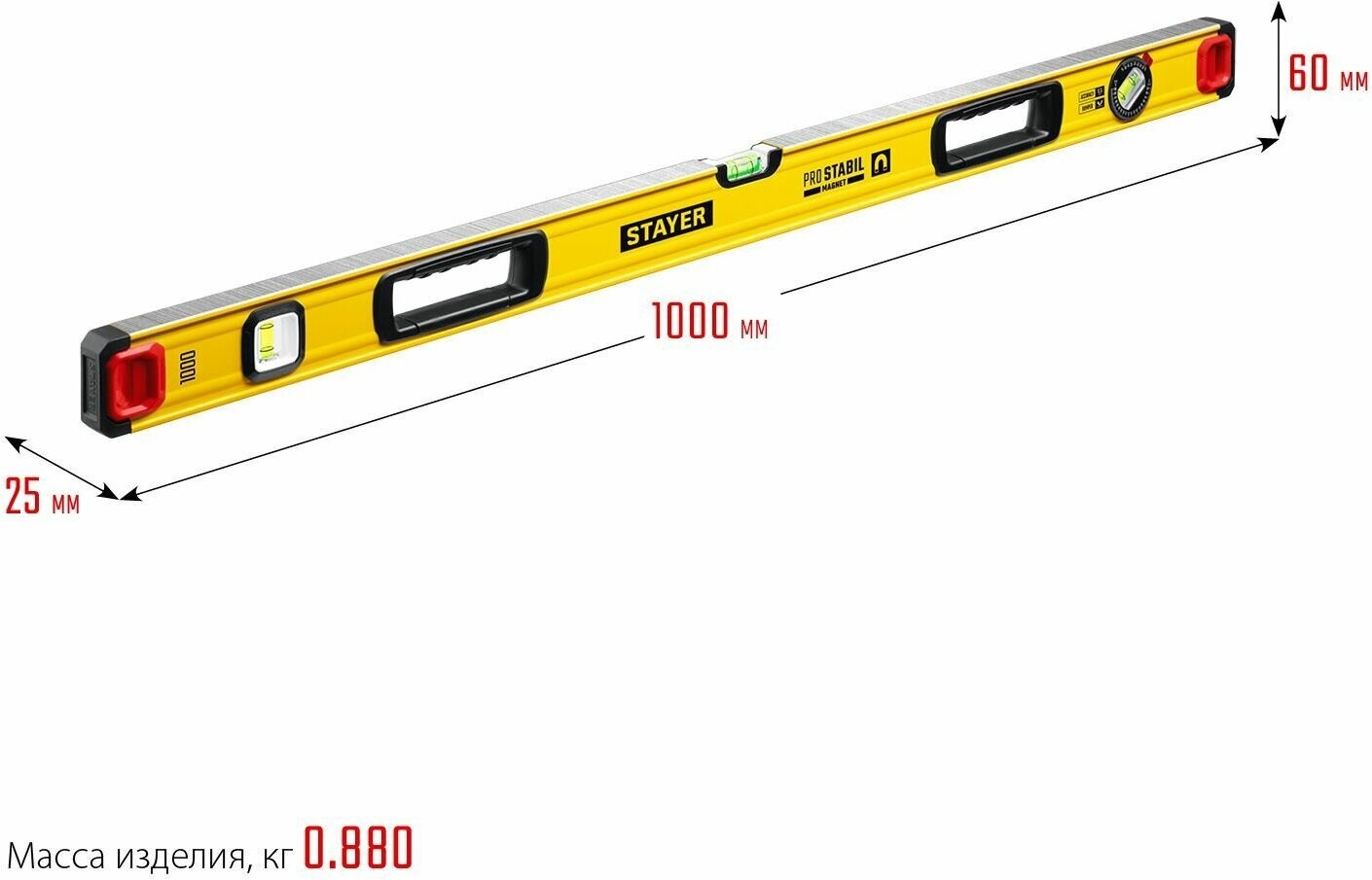 STAYER ProStabil Magnet 1500 мм уровень магнитный с двумя фрезерованными поверхностями