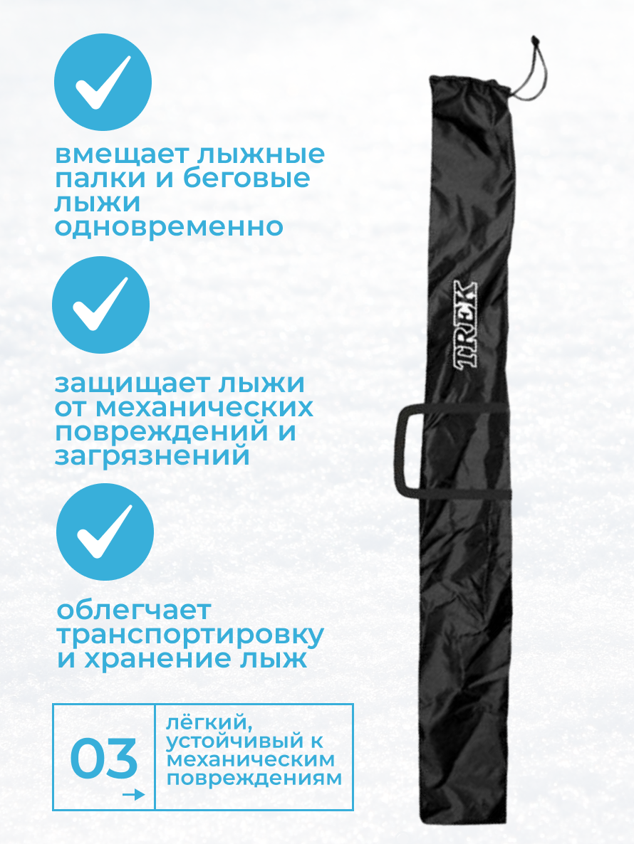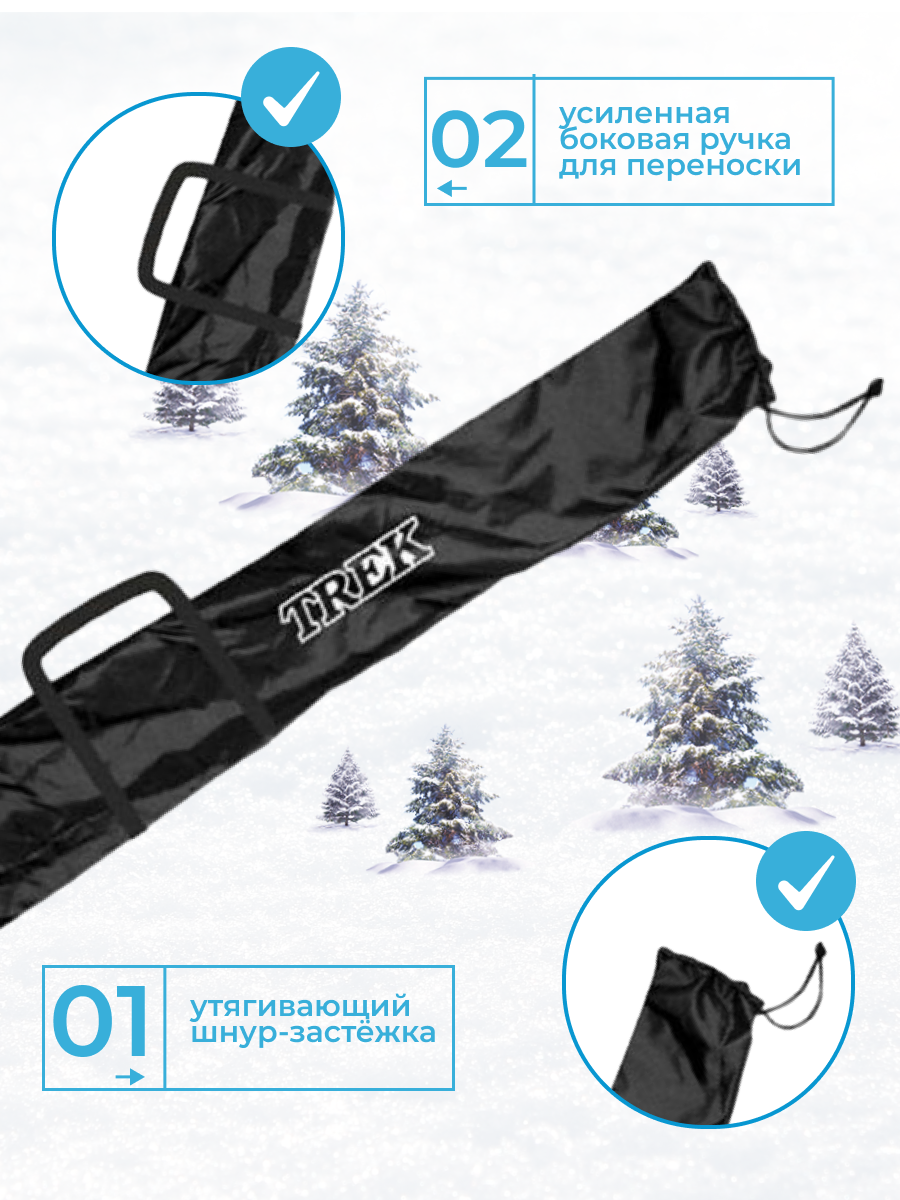 Чехол для беговых лыж TREK школьный 190см черный