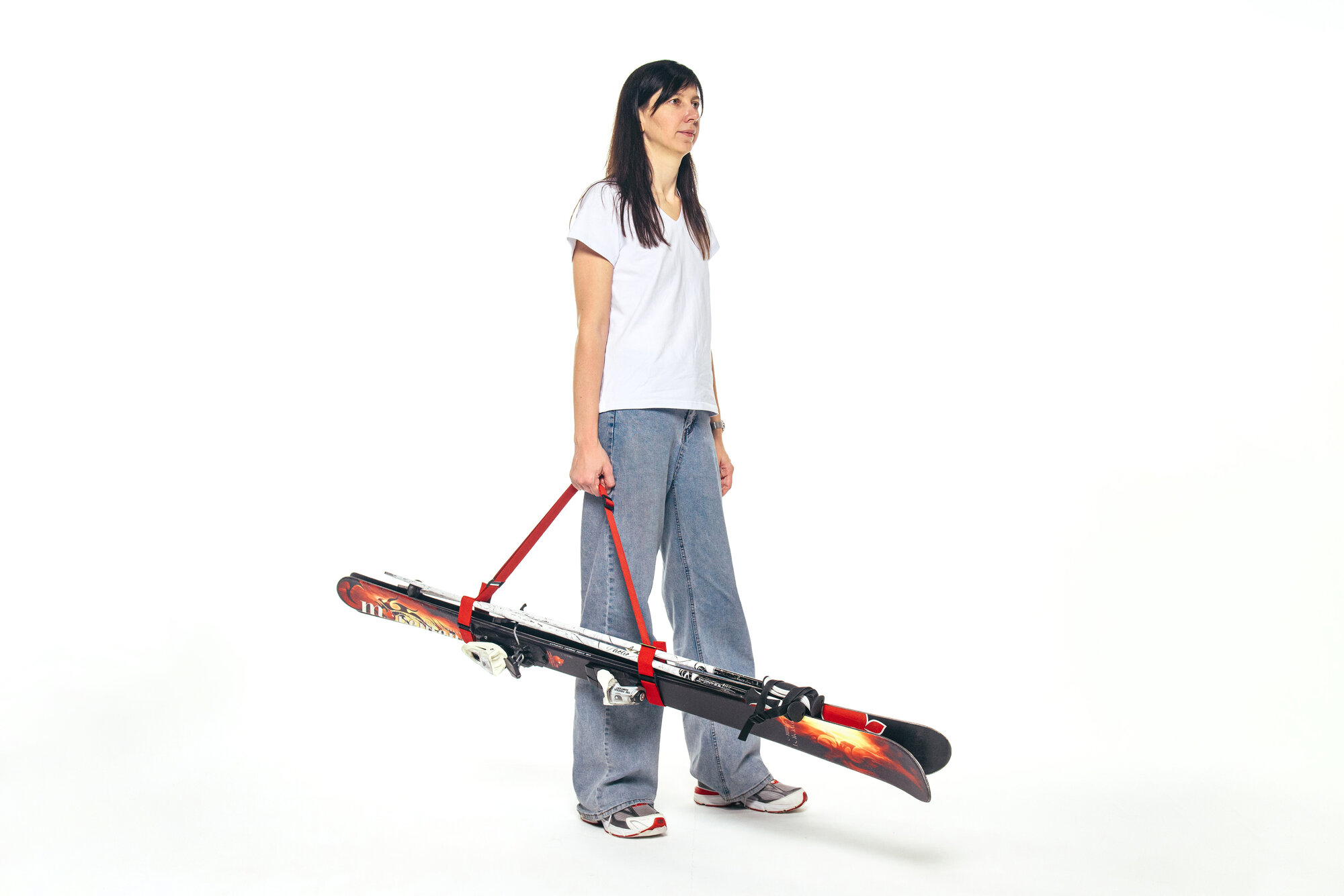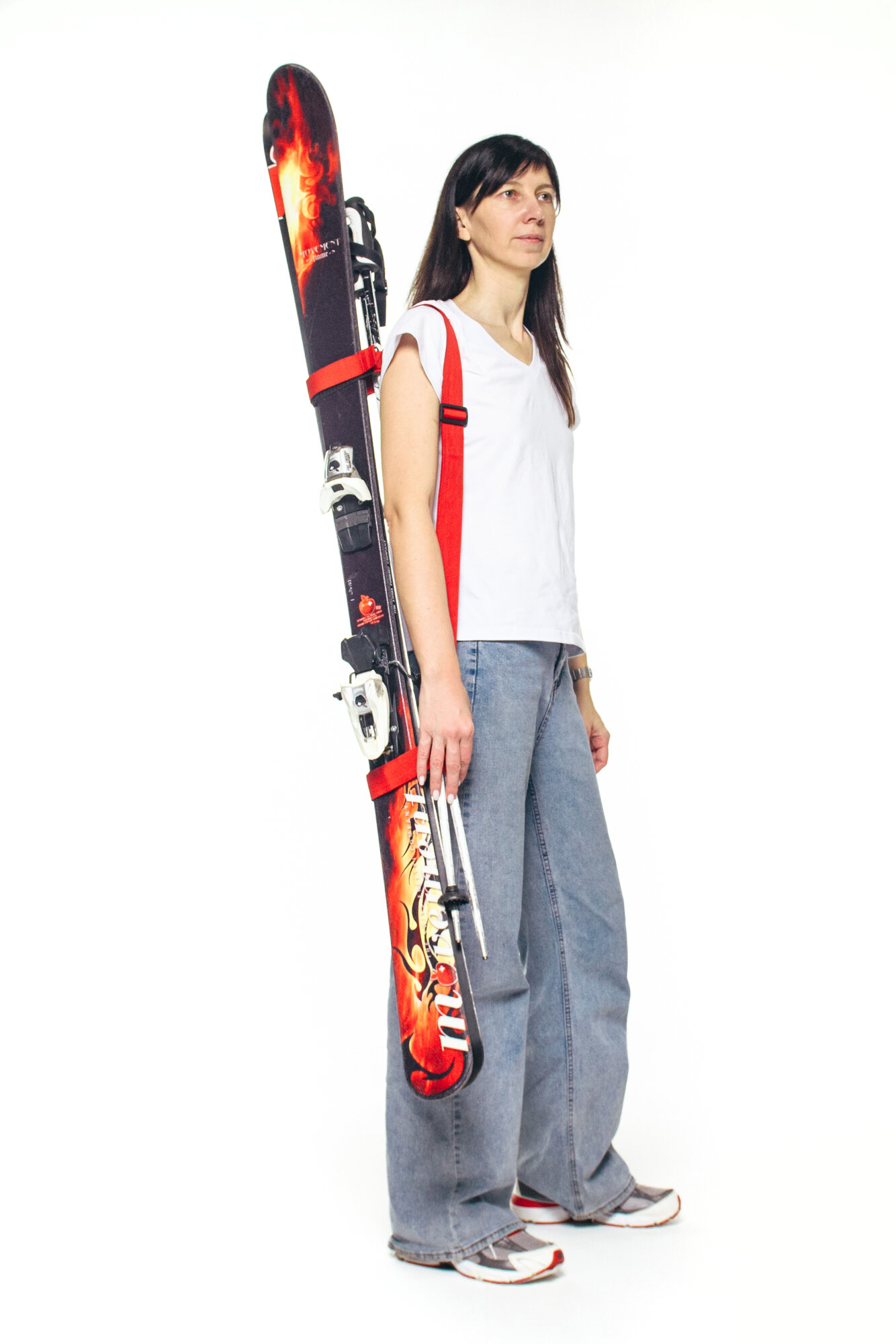 Купить Ремень-переноска с липучками для одной пары горных лыж с палками, наплечник в комплекте, регулируемая длина, 115 см, Nordic Skistrap Plus красный