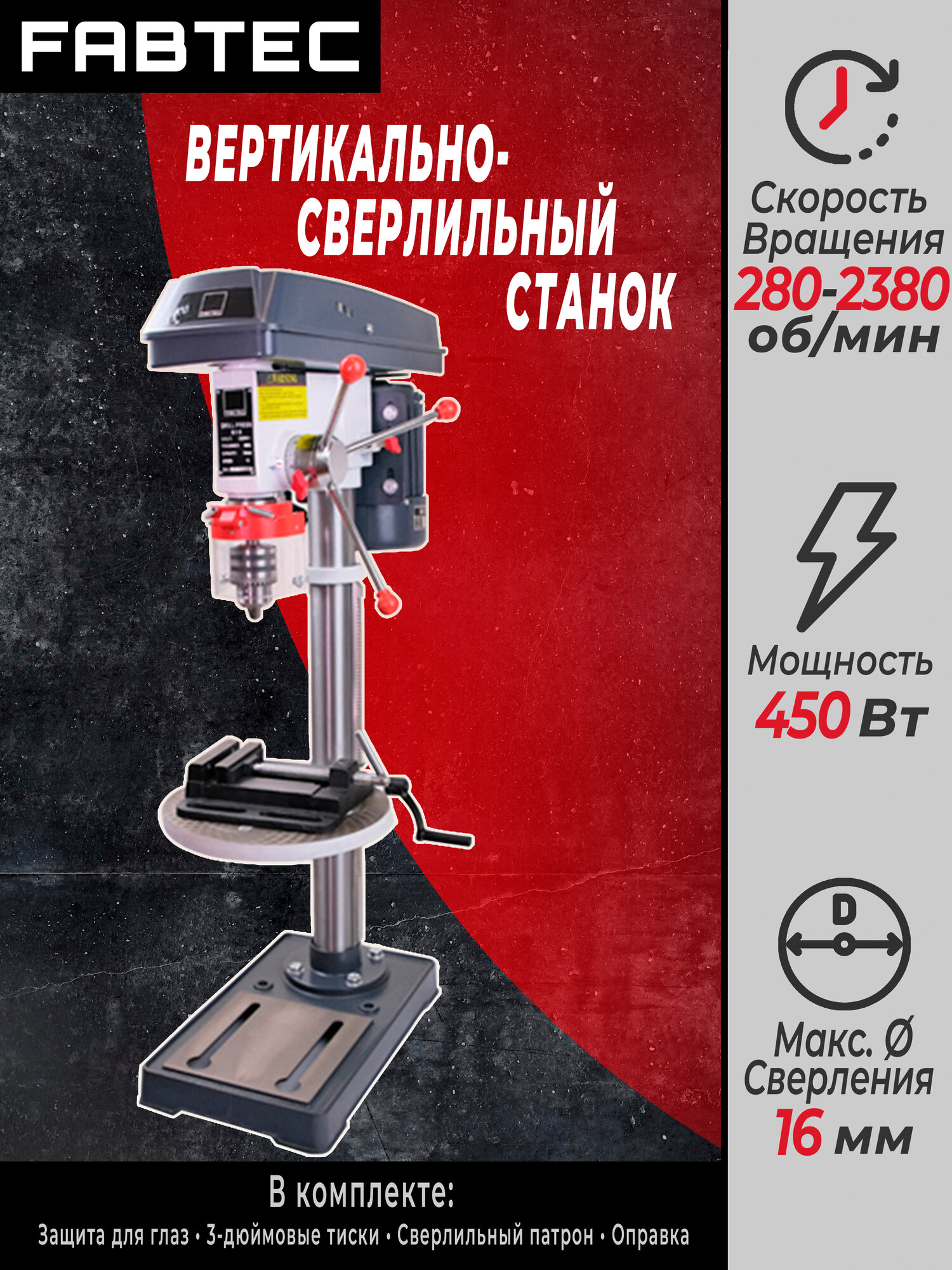 Сверлильный станок B16 (220v) FABTEC (60072) интересное: