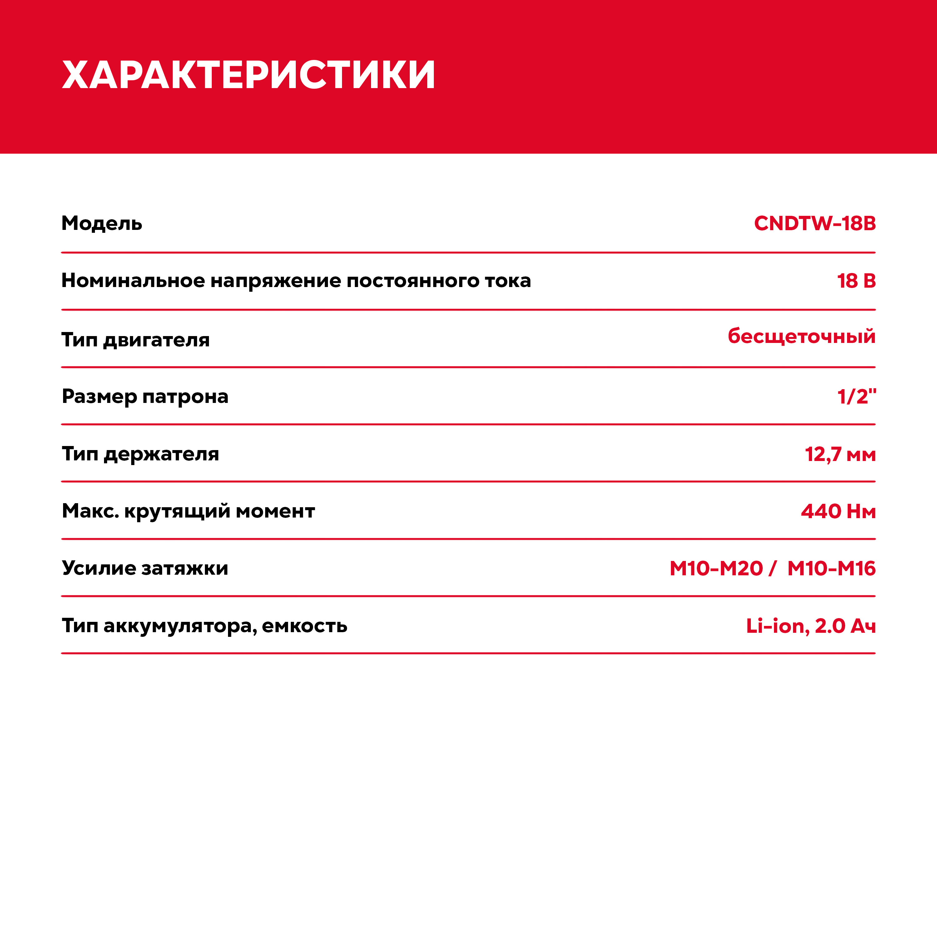 Гайковерт акк. угловой CNDTW-18B с бесщеточным двигателем Li-ion-2шт, 2.0Ач, 440Нм, З/У, кейс ProfiPower