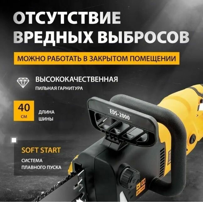 Пила цепная электрическая EDS-2000, 2кВт,продольная,шина 40см,шаг 3/8, паз 1,3мм, 56зв// Denzel 9561 .