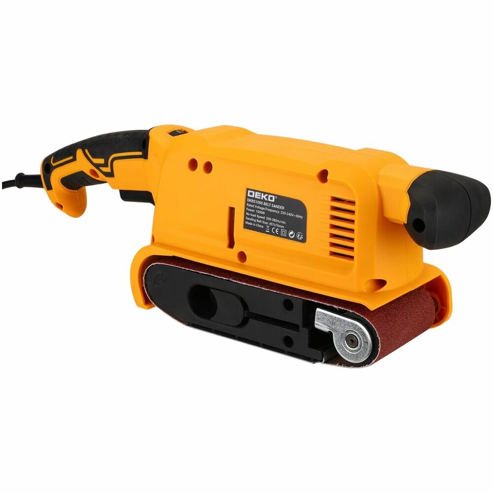 Ленточная шлифовальная машина Deko DKBS1000, 1000 Вт, с регулировкой оборотов (063-4353), желто-черный