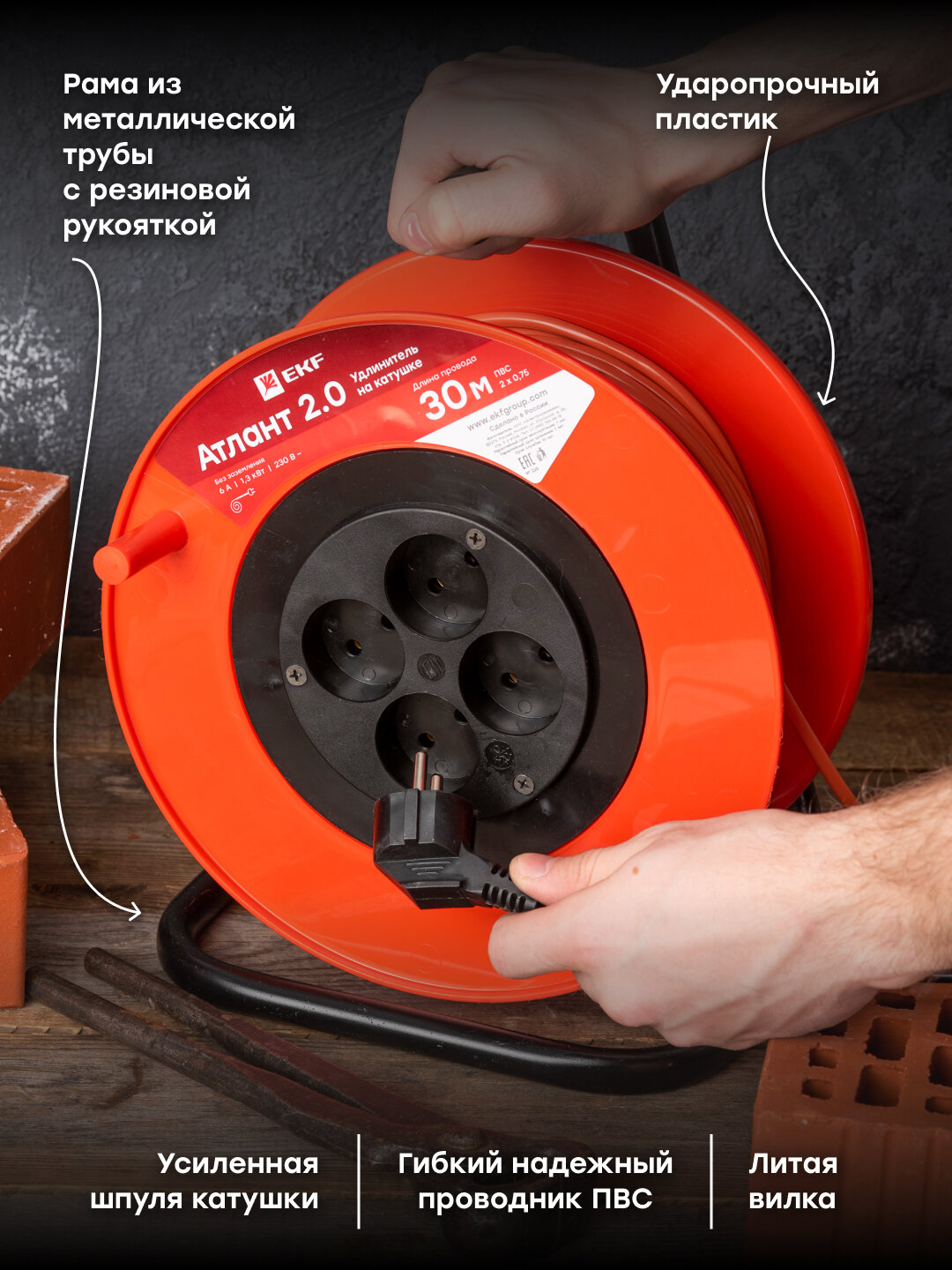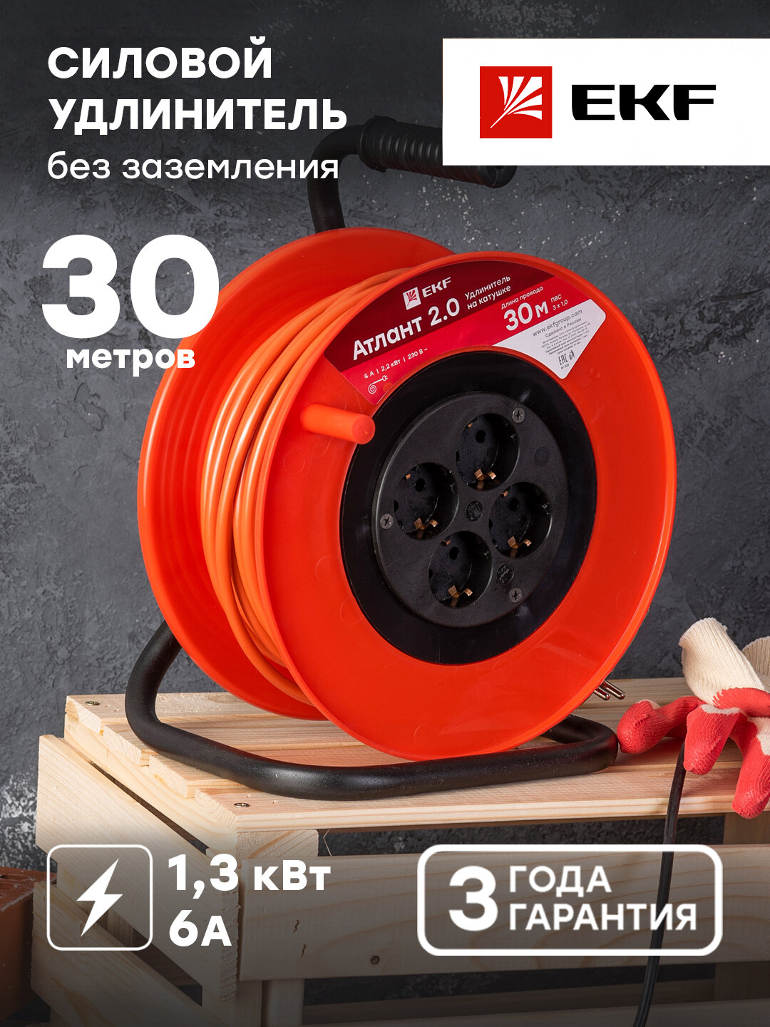 Купить Удлинитель на катушке EKF Атлант 2.0 (UKA02-06-275-4-30)