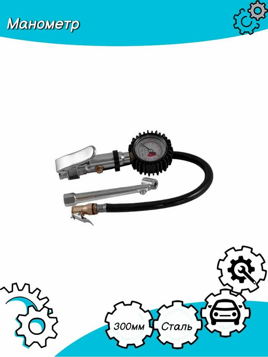 Манометр Для Контроля Давления И Подкачки Шин С Насадкой-Удлинителем Для Г/А, Шланг 300 Мм Jonnesway арт. AG010038S