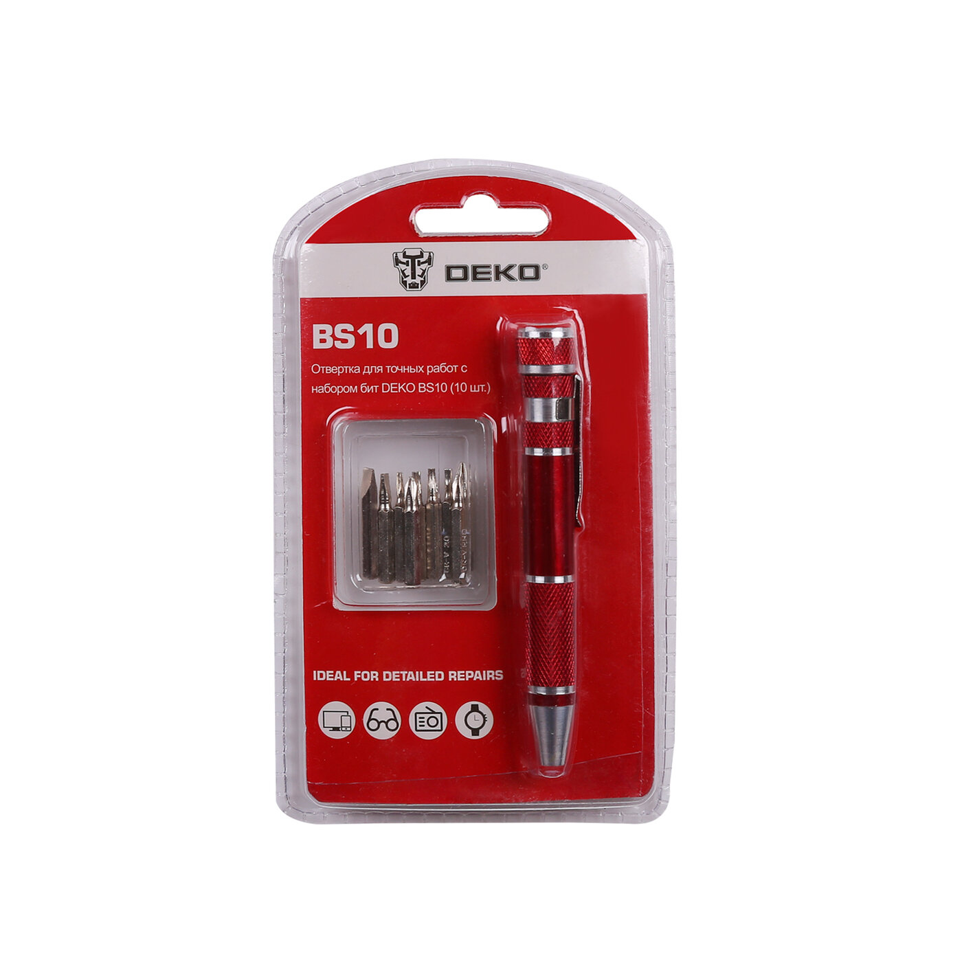 Отвертка для точных работ с набором бит DEKO BS10 (10 шт.)