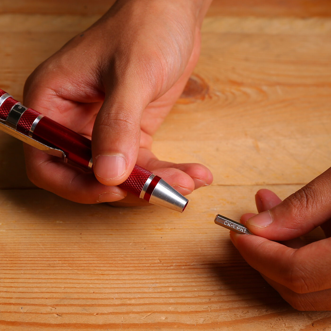 Компактная для мелких деталей, не занимает много места, выглядит как обычная ручка |
