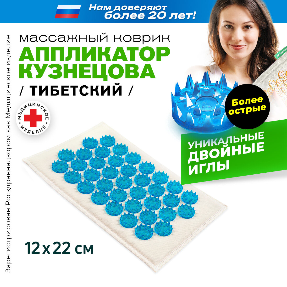 Лаборатория Кузнецова Иппликатор игольчатый Тибетский на мягкой подложке Синий 12см*22см/370