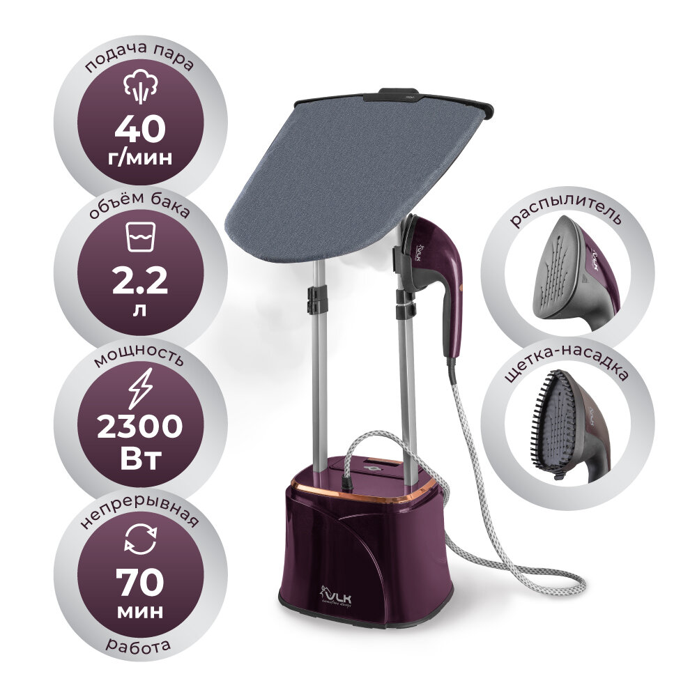 VLK Отпариватель VLK Rimmini 7900, напольный, 2300 Вт, 2.2 л, 40 г/мин, фиолетовый