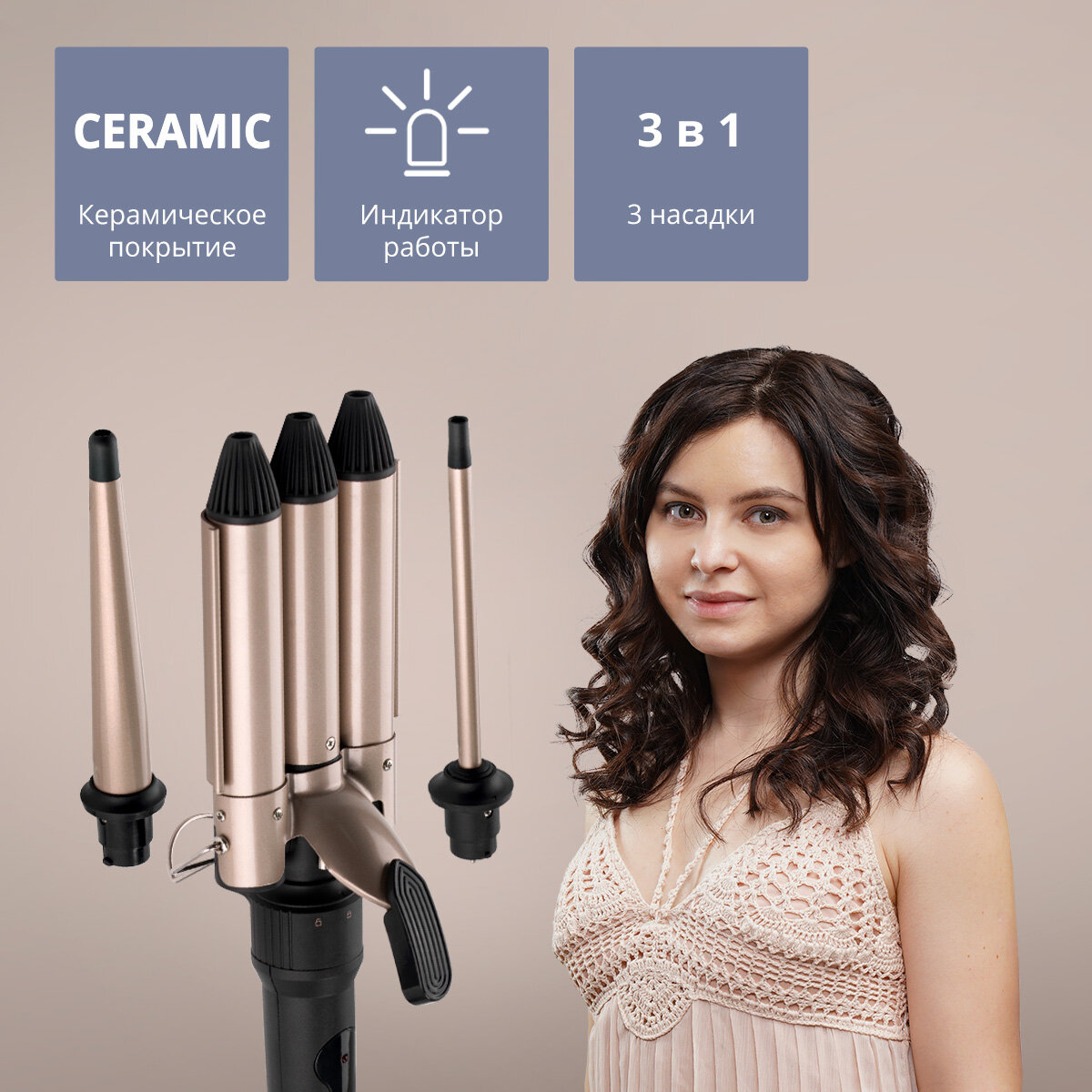 Плойка тройная керамическая для укладки волос с режимами температуры INFINITIPRO GM-45W/25мм