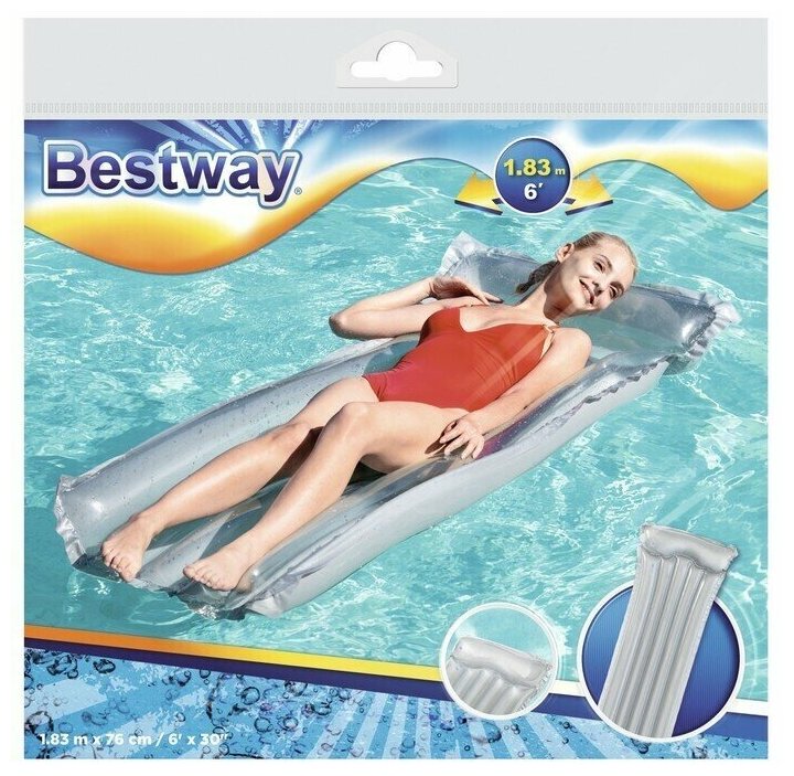 Матрас надувной BestWay для плавания 183х76см ''Прозрачный'' до 90кг 4 цвета 44013 BW