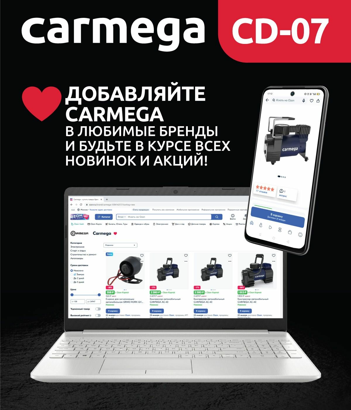 СохранитьБеспроводной автомобильный компрессор Carmega CD-07 насос для автомобиля аккумуляторный интересное:
