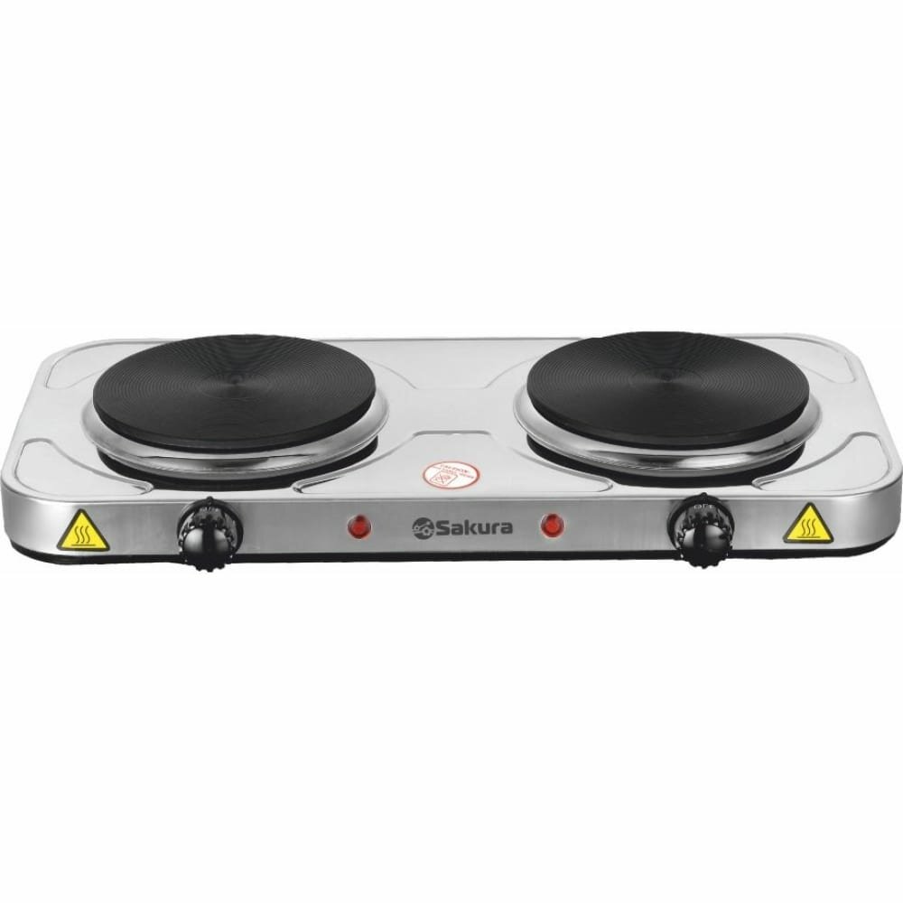 Электрическая плитка Sakura ПЭ-04Н 2000 Вт, 154/154 мм, 2 конфорки/диск, нержавеющая сталь РТ-00069383