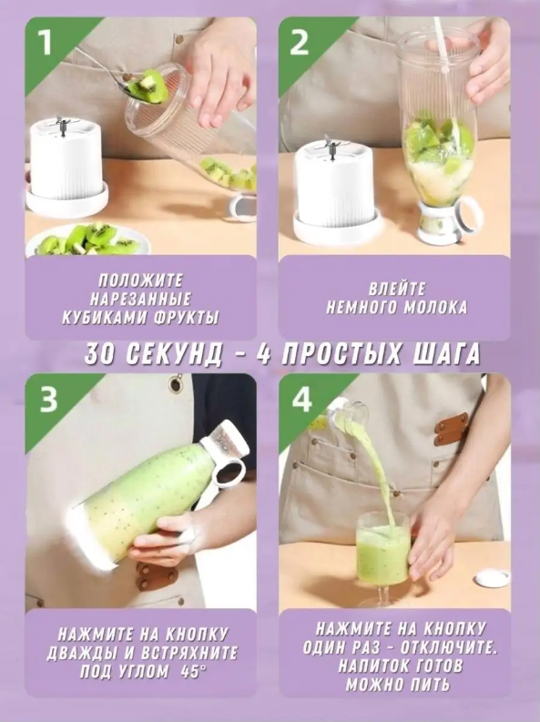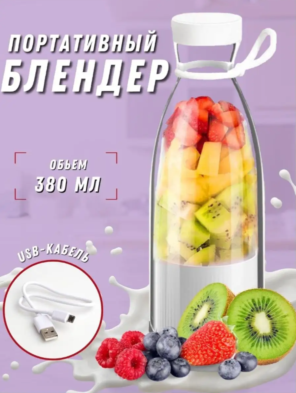 Компактный блендер-бутылка 380 мл, для любителей свежих коктейлей и смузи, белый интересное: