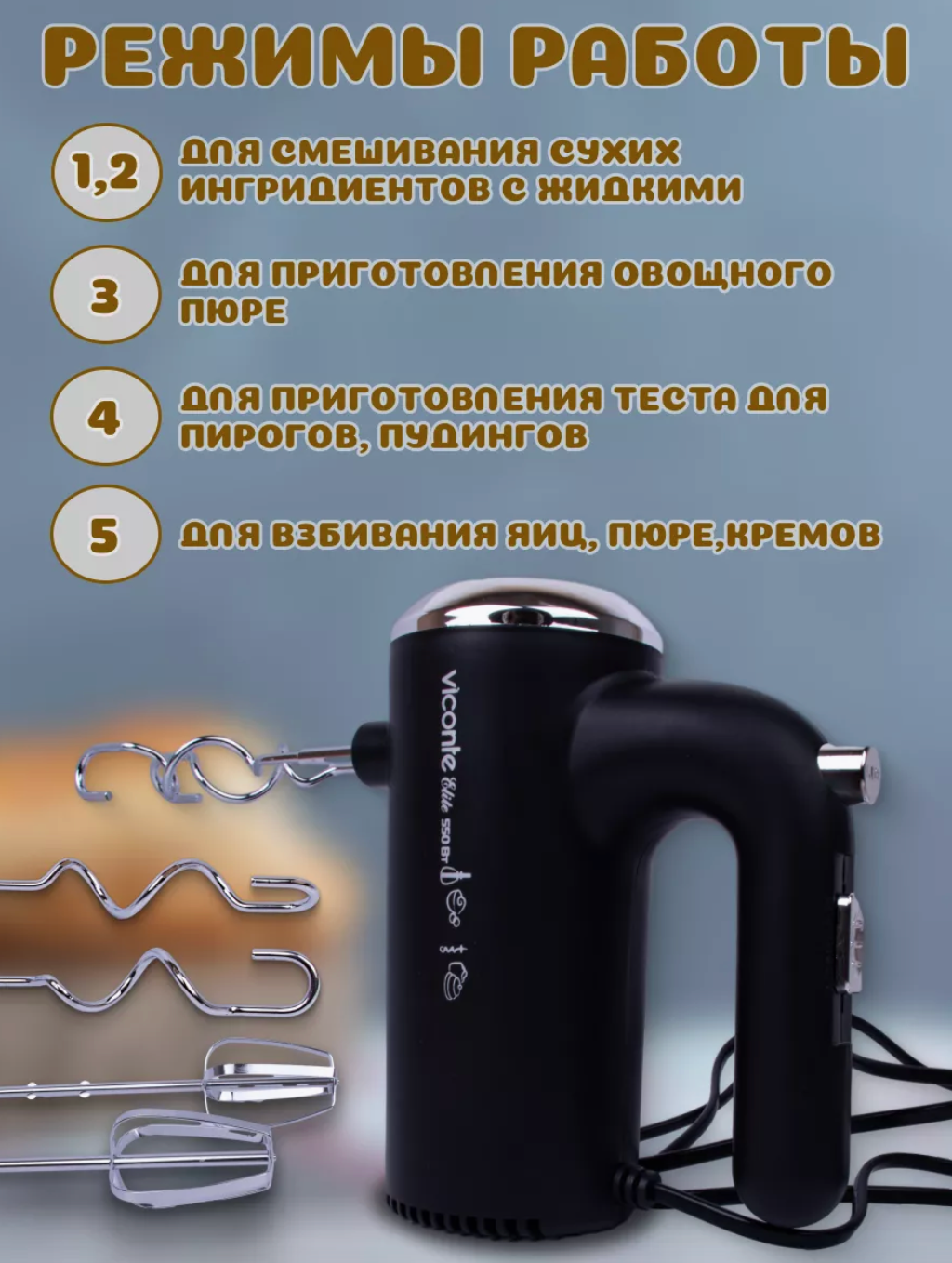 Миксер ручной VICONTE VC-1342 550 Вт, черный интересное: