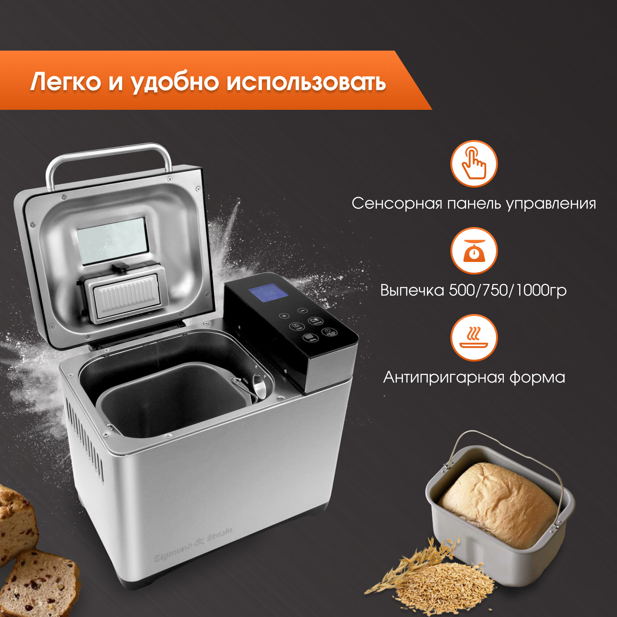 Хлебопечь автоматическая Zigmund & Shtain ZBM-601, с 19 автопрограммами и замесом теста интересное: