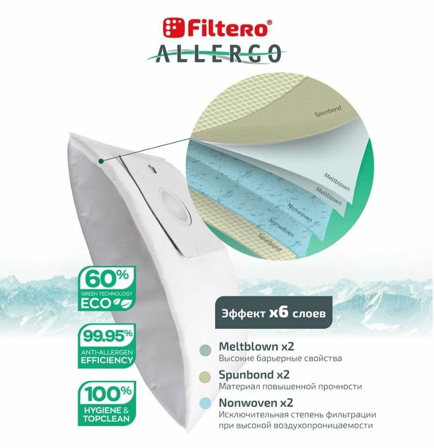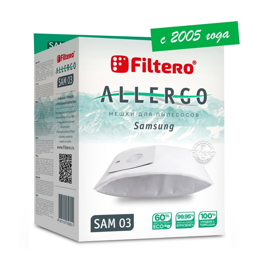 Мешки-пылесборники Filtero SAM 03 Allergo, для пылесосов SAMSUNG, 4 штуки, моторный и микрофильтр