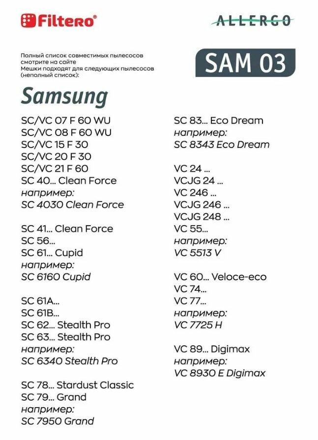 Пылесборники Filtero SAM 03 (4) Allegro интересное: