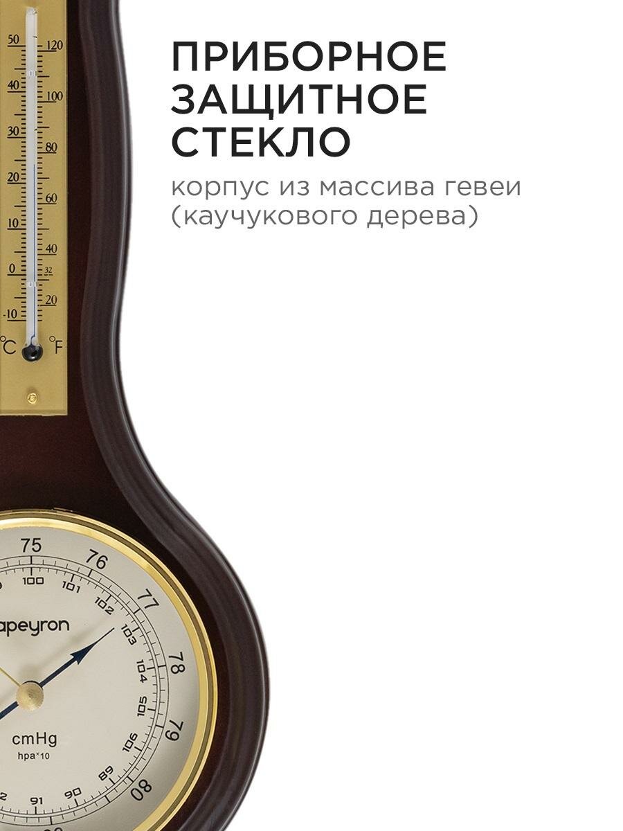 Барометр настенный с термометром Apeyron 33.5х13.6 см / тёмное дерево массив гевеи, WD2207-983-9