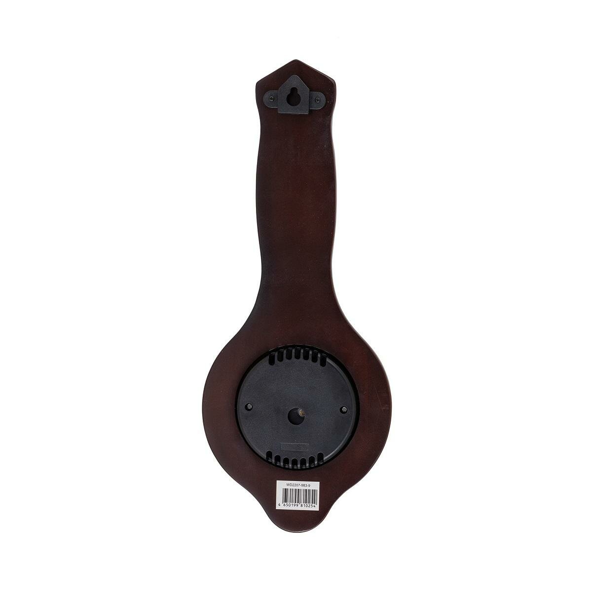 WD2207-983-9 Барометр настенный, термометр, тёмное дерево массив гевеи, размер 33,5х13,6см, (Китай)