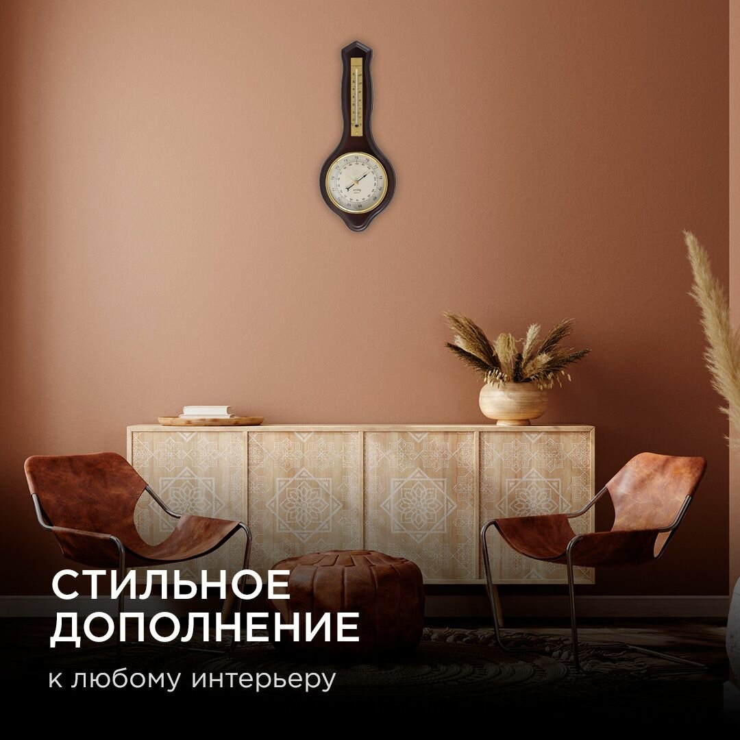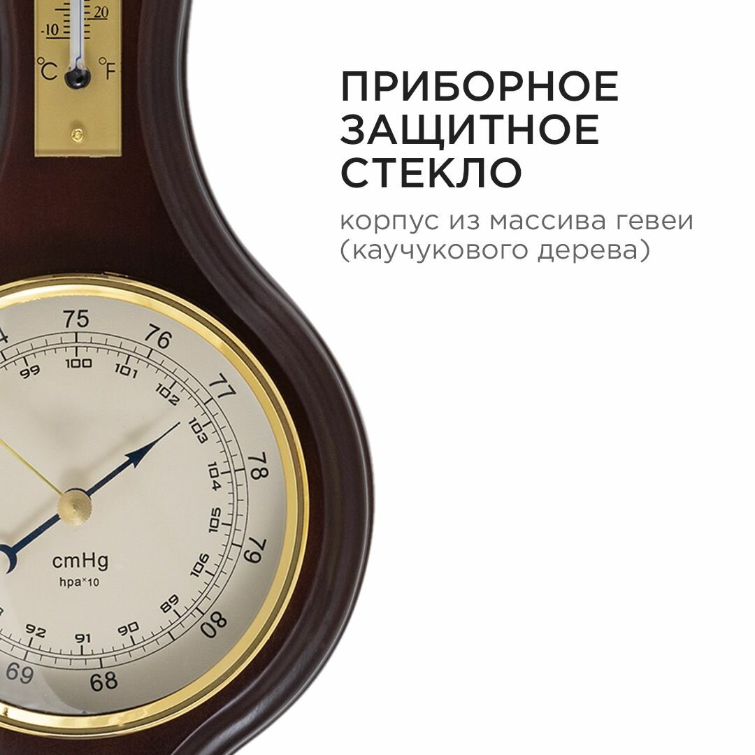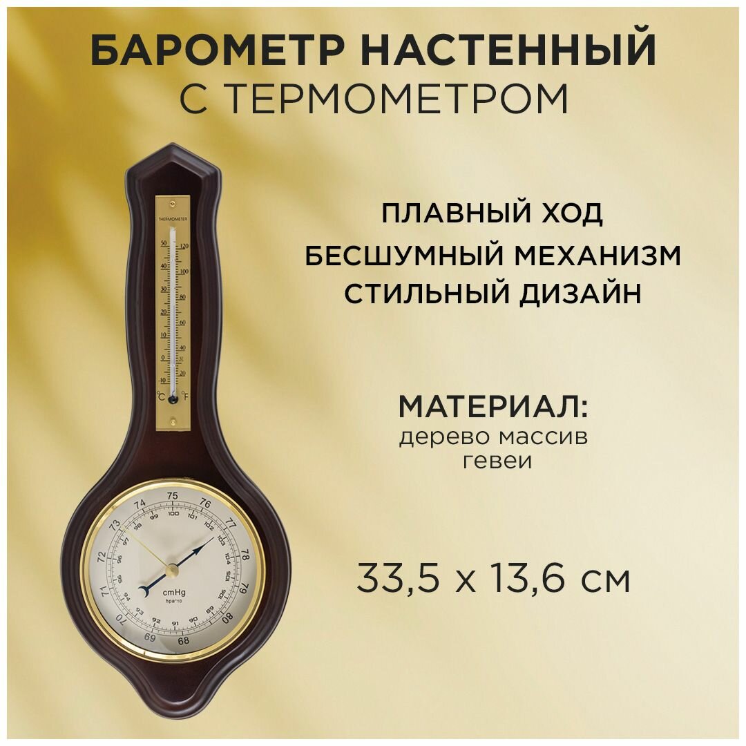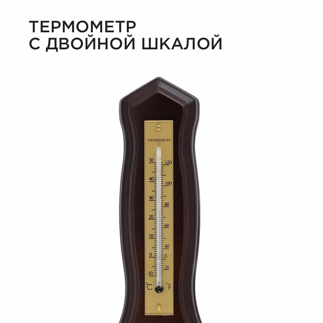 Барометр настенный с термометром 33.5х13.6 см / тёмное дерево массив гевеи