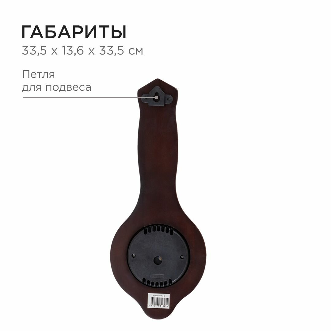 Apeyron барометр настенный, термометр, тёмное дерево гевеи, размер 33,5x13,6см, бесшумные с плавным ходом, батарейка 1аа / WD2207-983-9