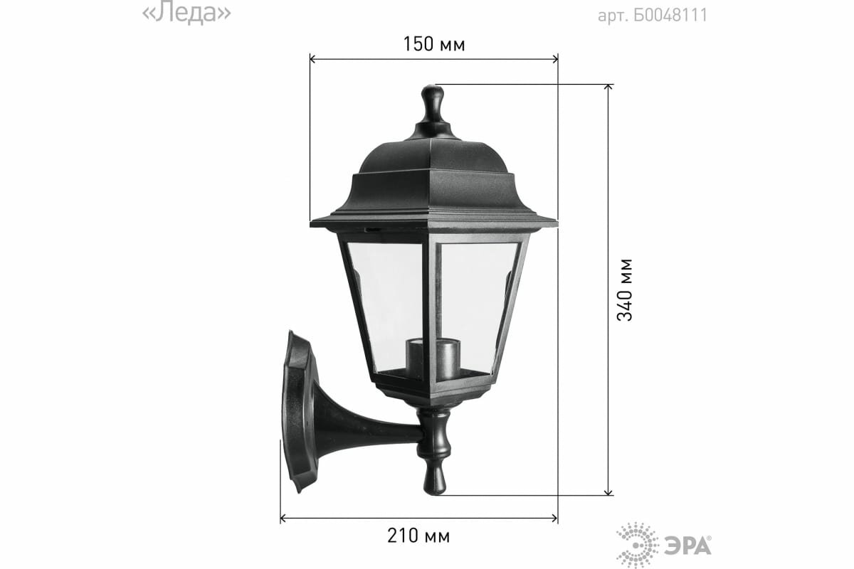 ЭРА НБУ 04-60-001 черный ЭРА Светильник садово-парковый Леда настенный четырехгранный черный Е27 (8/96)