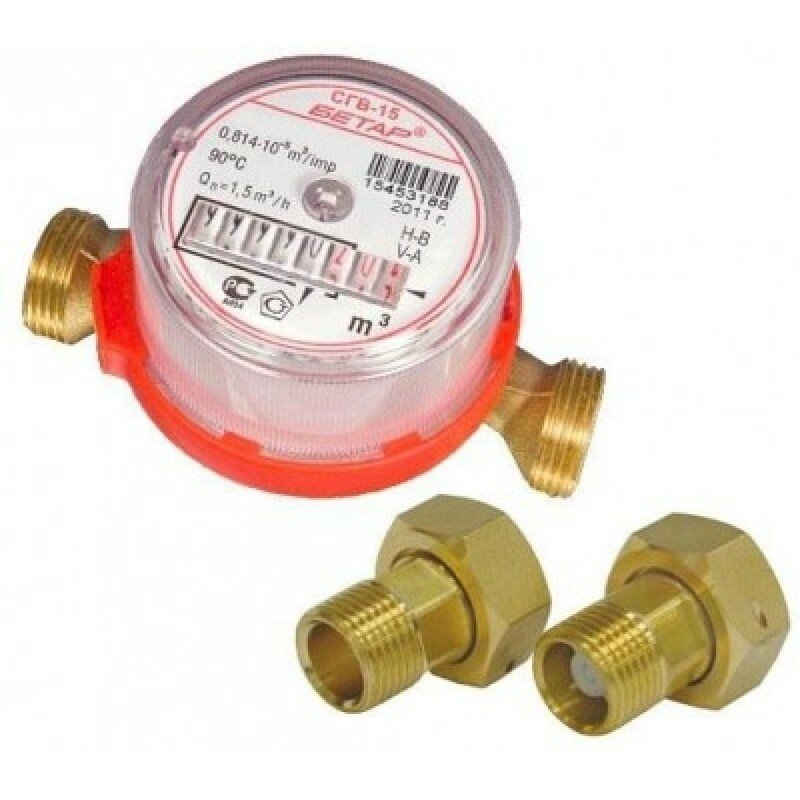 Водосчетчик Бетар Сгв-15 МЗ, антимагнитный, с монтажным комплектом