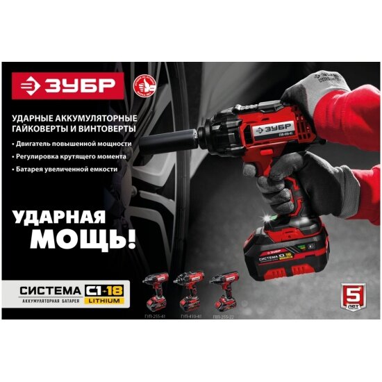 Гайковерт Зубр ГВЛ-255 Мастер (18В, без АКБ, в коробке)