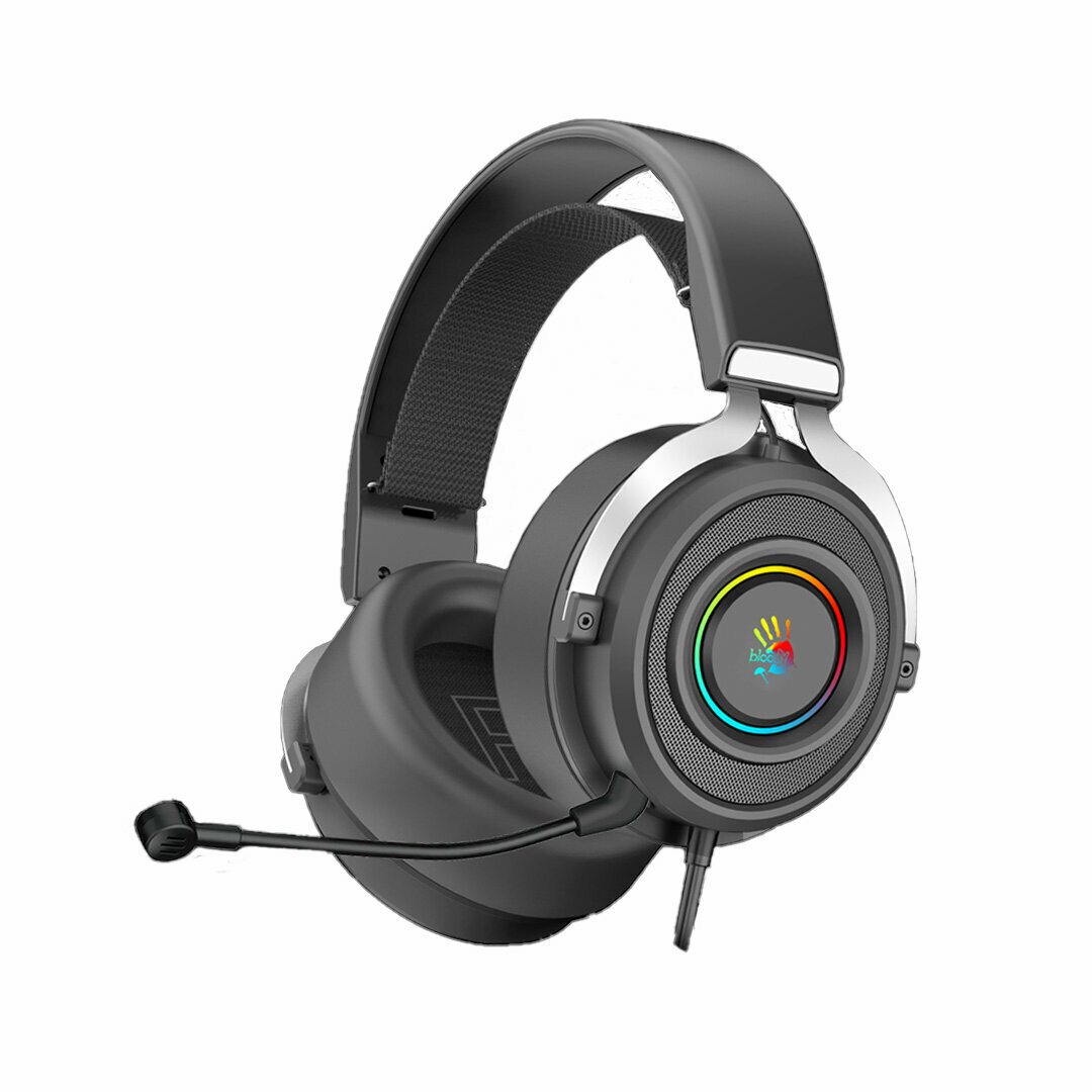 Игровые наушники с микрофоном A4Tech Bloody G535, Подсветка RGB, мониторные 7.1, 2м. USB, черный/серебр.