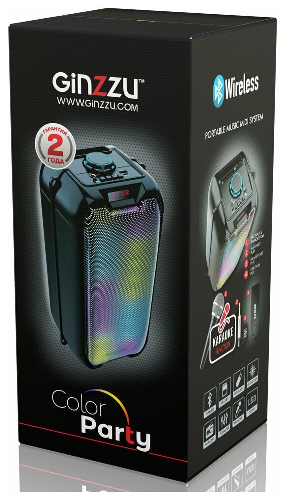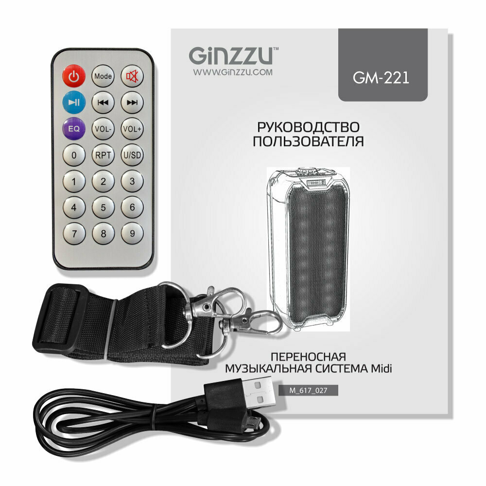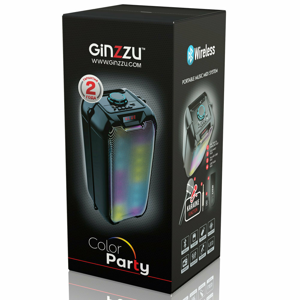 Акустическая колонка GINZZU GM-221, 24Вт, подсветка, 2400 мАч