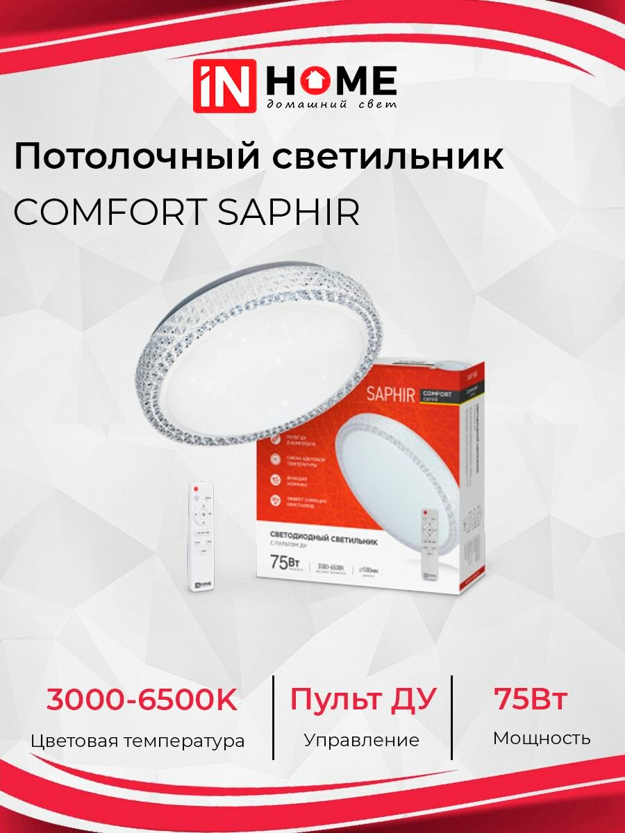 Светильник диодный COMFORT SAPHIR 75Вт 3000-6500K 6000Лм пульт ДУ, белый IN HOME 4690612035123