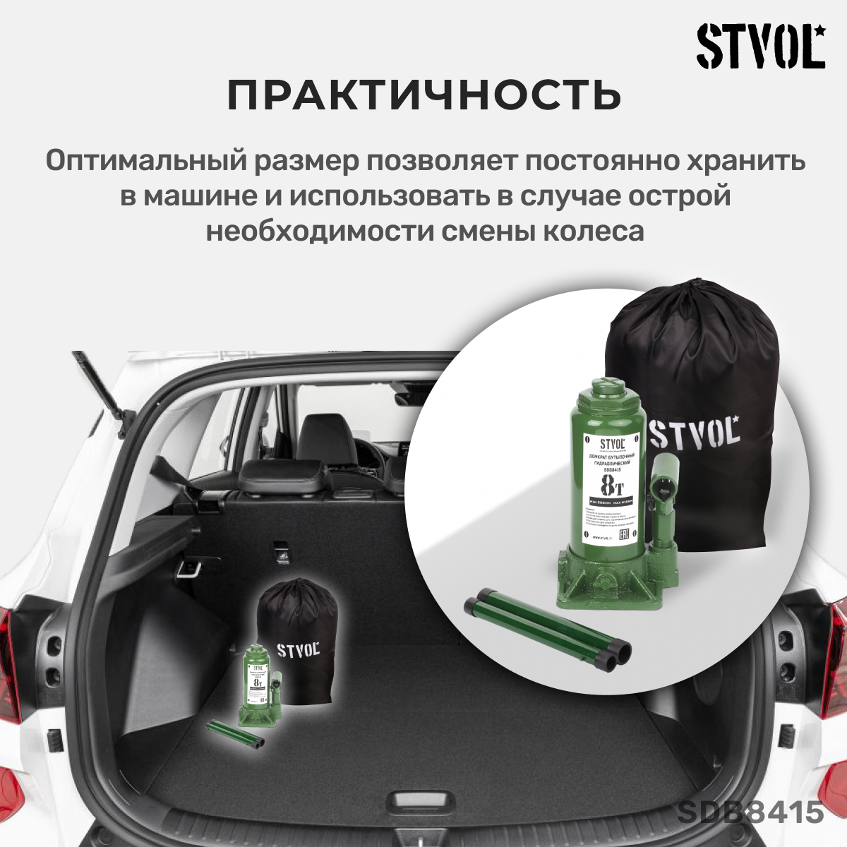 СохранитьSTVOL SDB8415 Домкрат бутылочный 8т (205-415 мм) STVOL интересное: