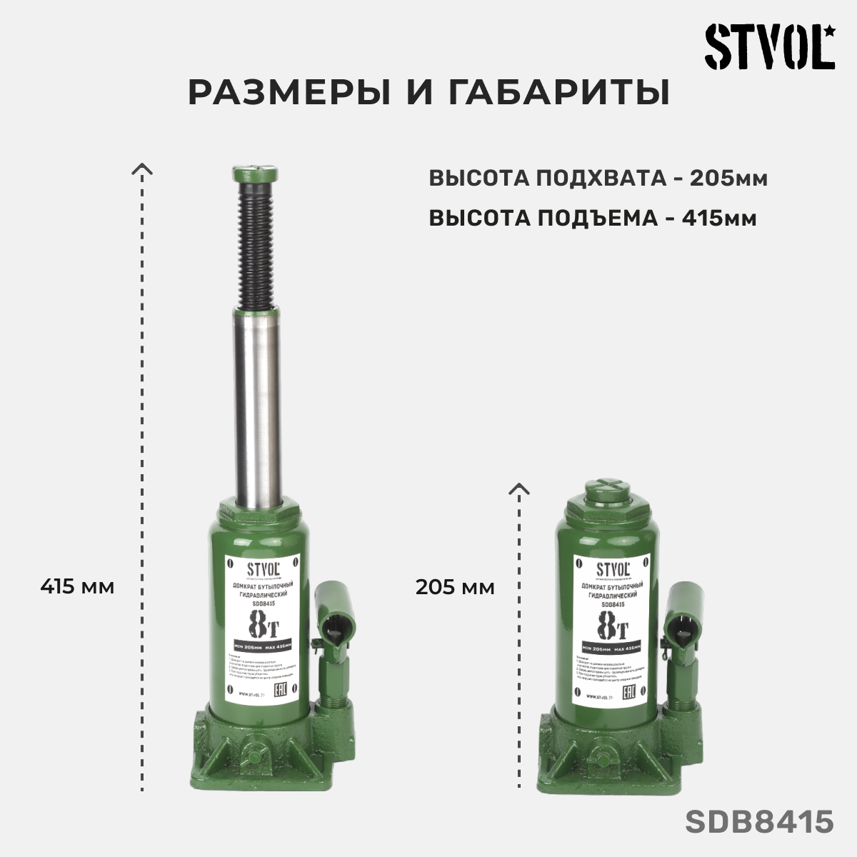 Домкрат Бутылочный 8Т (205-415 Мм) Stvol STVOL арт. SDB8415