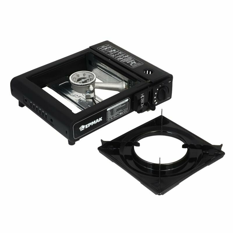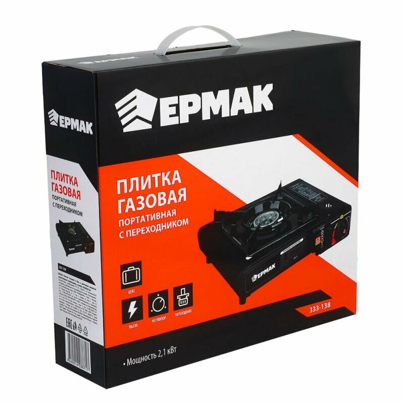 Ермак Плитка газовая к бал. с цанговым захватом портативная с переходник, в кейсе, 34х26х9см