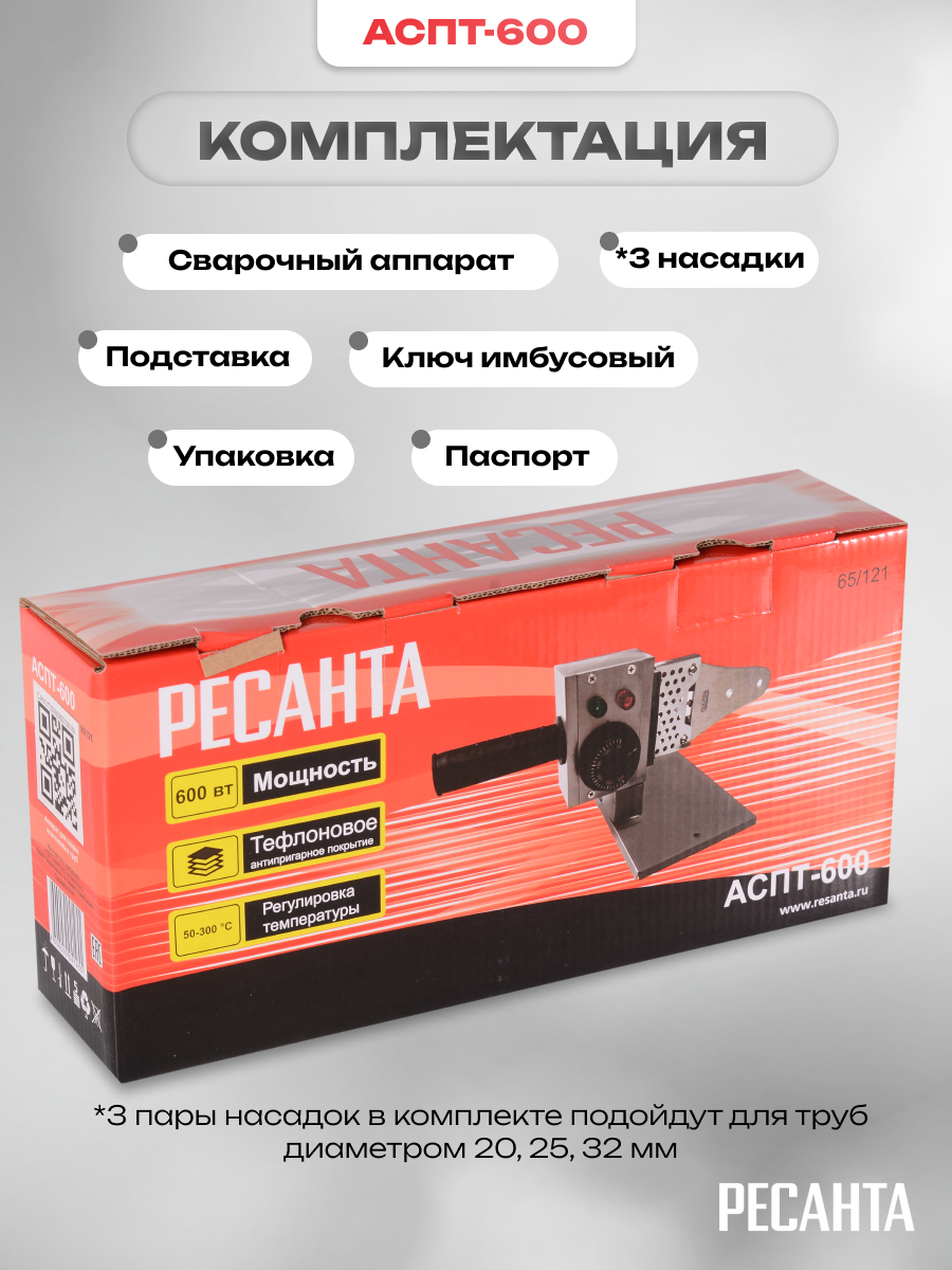 Сварочный аппарат для полипропиленовых труб АСПТ-600 РЕСАНТА, 65/121