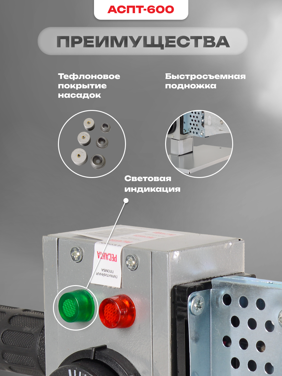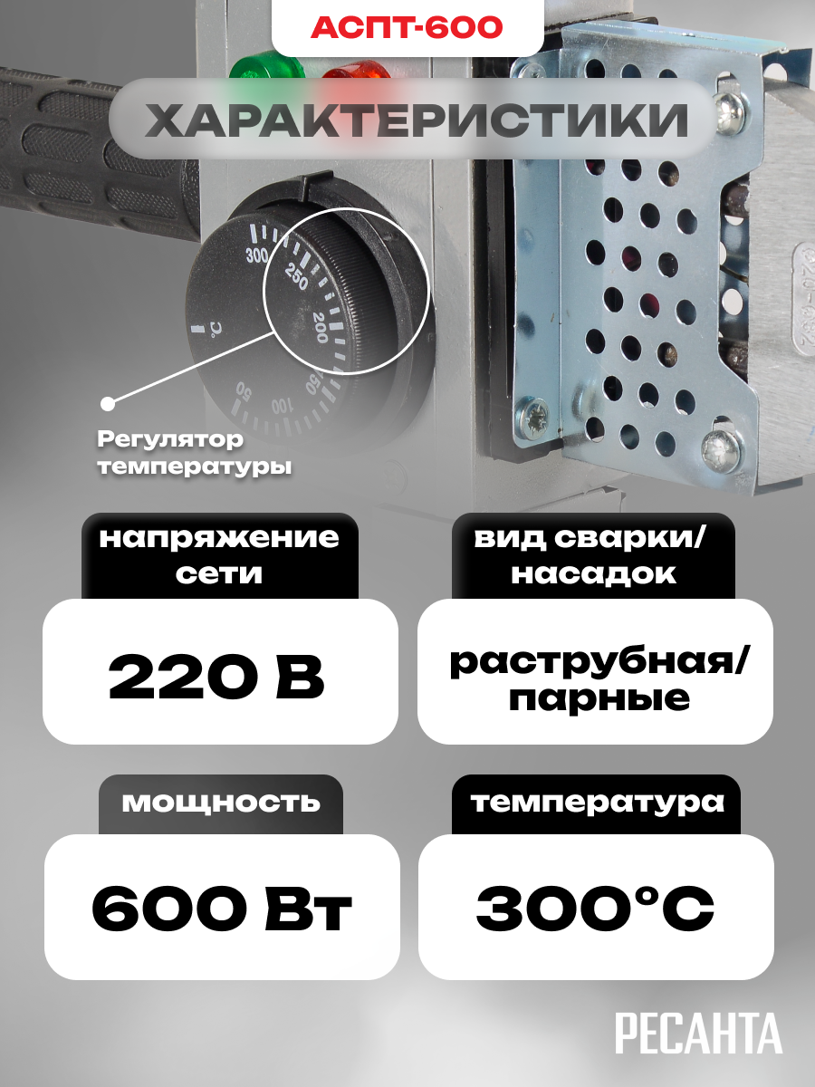 Аппарат для сварки пластиковых труб РЕСАНТА АСПТ-600, 3 насадки