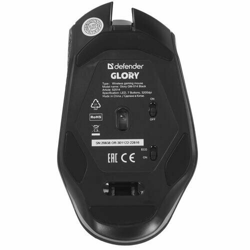 Мышь Defender Glory GM-514, игровая, оптическая, беспроводная, USB, черный [52514]