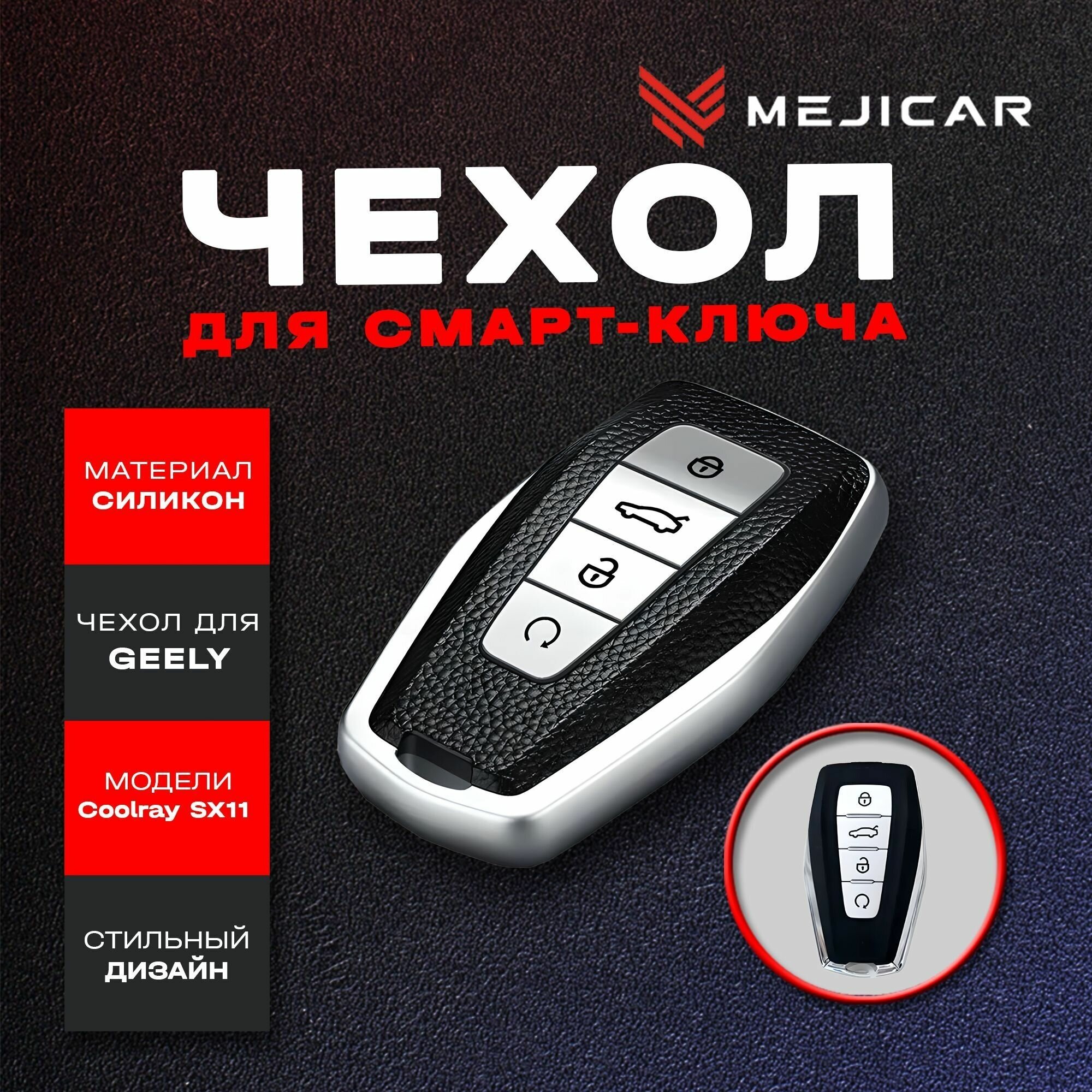 Чехол силиконовый MejiCar для смарт-ключа Geely Coolray SX11 2019 - н.в. Silver TPU