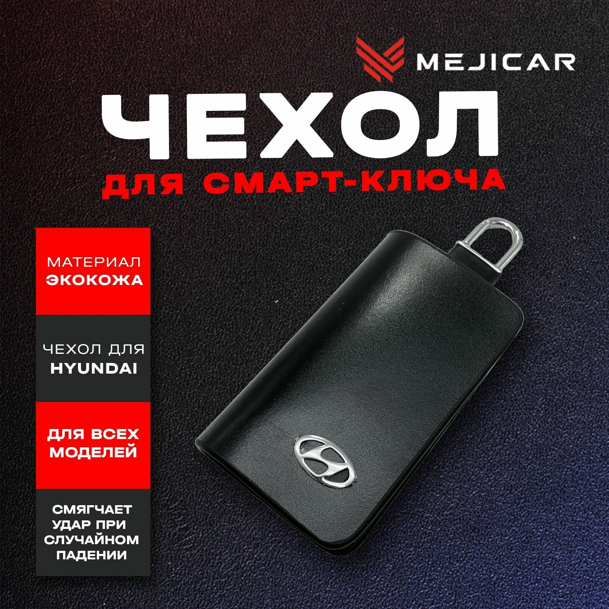 Чехол-ключница кожаная для ключа Hyundai Black интересное: