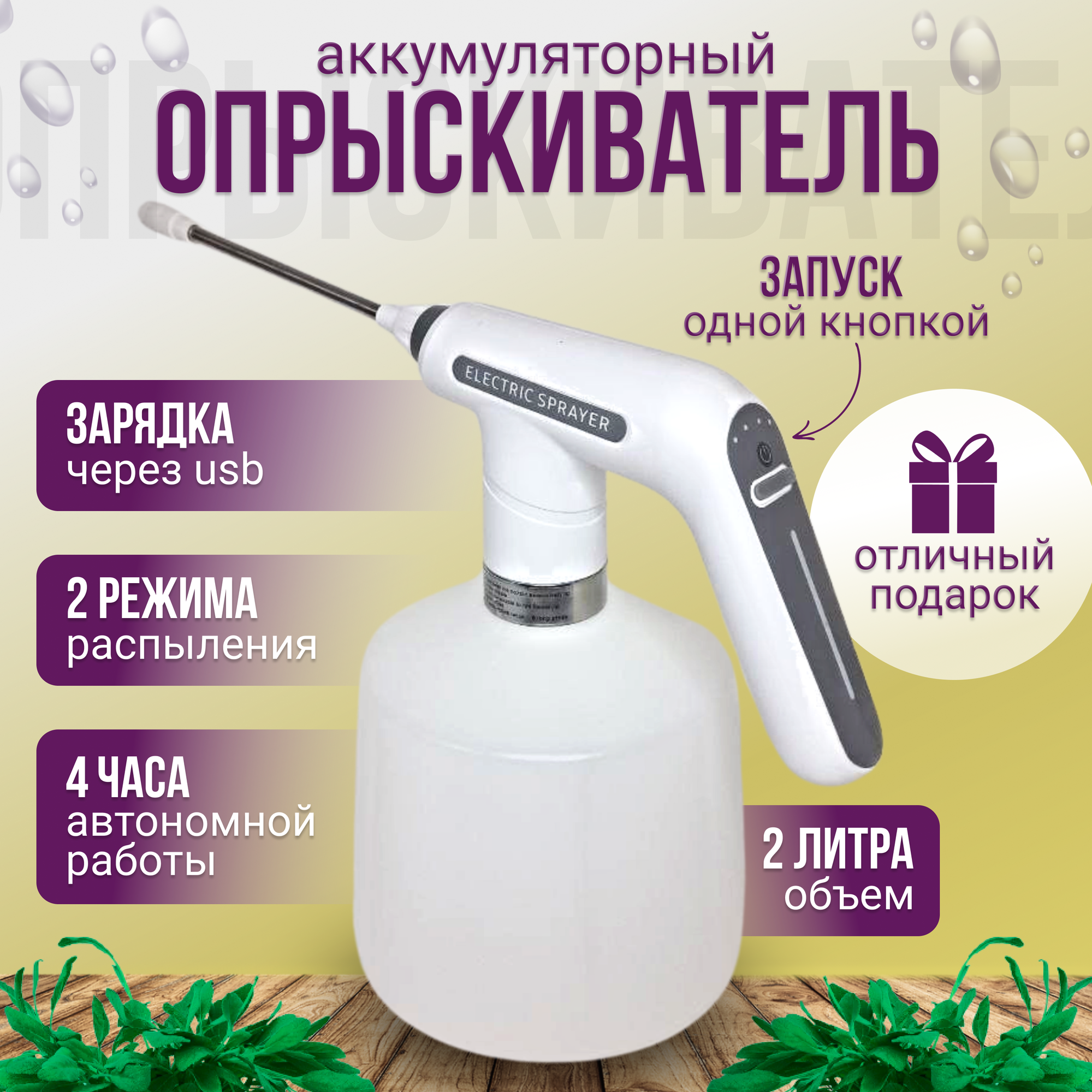 Пульверизатор для растений 2 литра Опрыскиватель аккумуляторный для сада и огорода Опрыскиватель для цветов интересное: