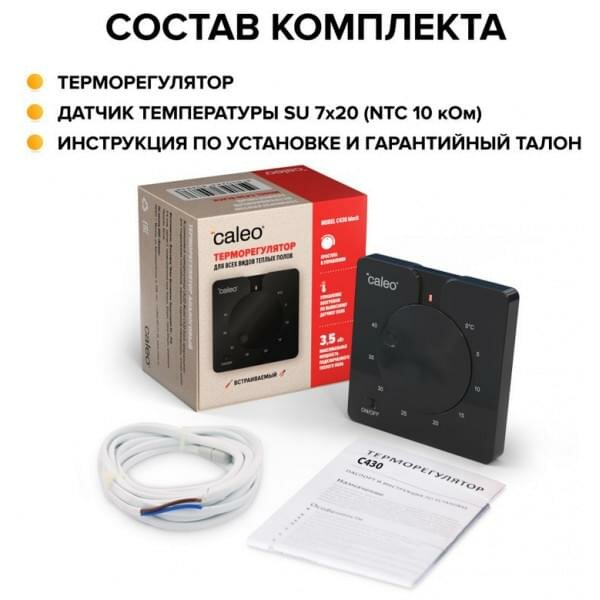 Терморегулятор CALEO C430 Black, встраиваемый, аналоговый, 3.5 кВт