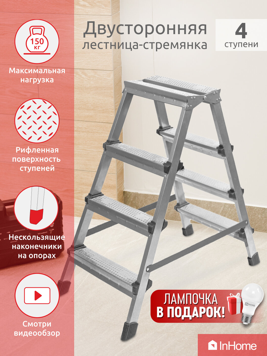 СохранитьЛестница стремянка двусторонняя металлическая, InHome INL4 интересное: