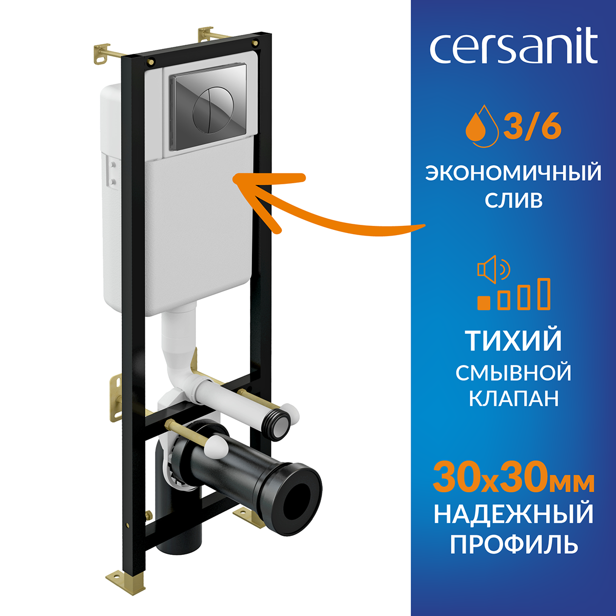 Cersanit Комплект Cersanit PARVA CO DPL EO инсталляция BLACK кнопка LEON пластик хром глянцевый