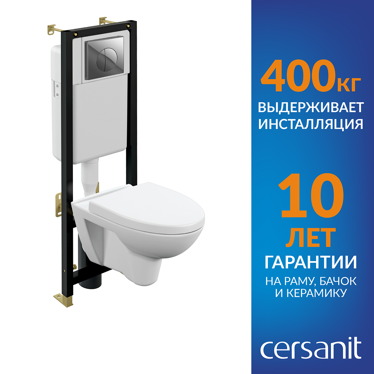 Купить Унитаз подвесной с инсталляцией, кнопкой и сиденьем Cersanit 64229